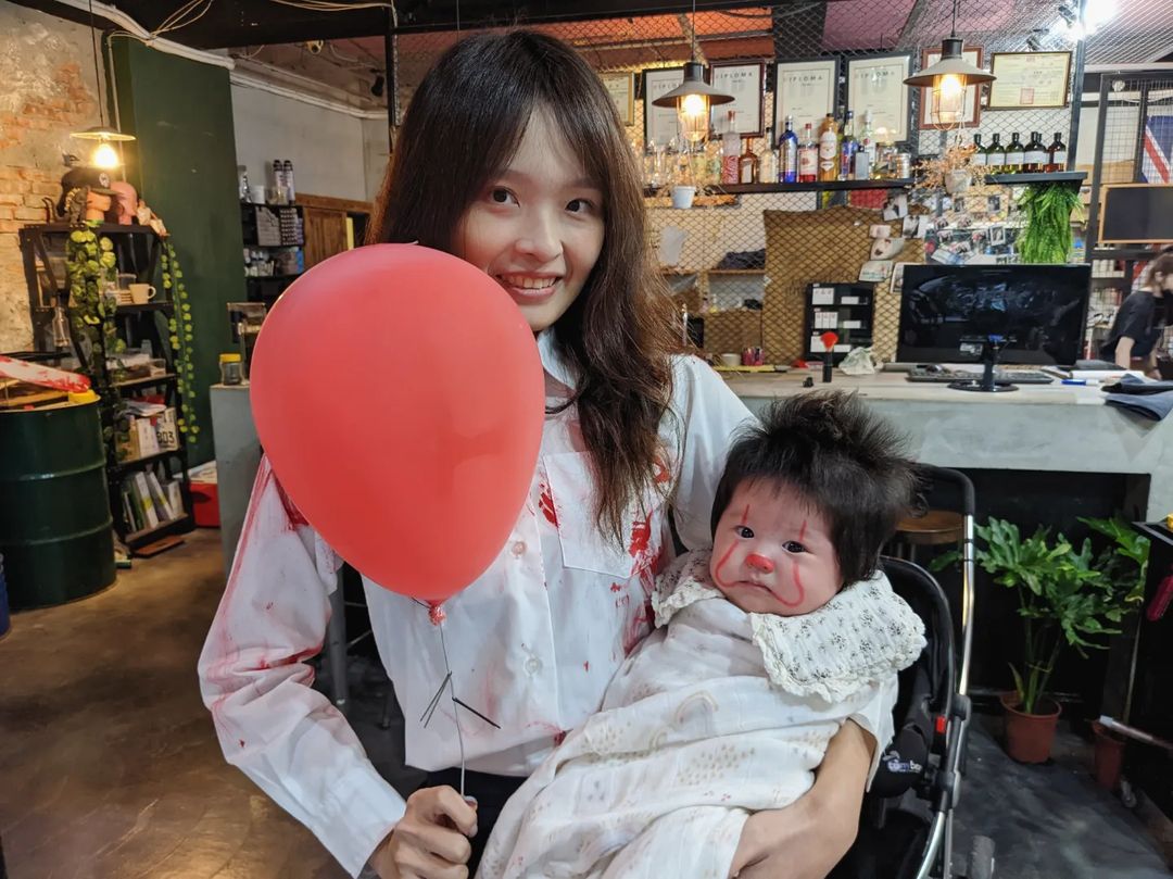 Meet Muxi, a three-month-old baby girl from Banqiao, Taiwan, who dressed up as Pennywise the Clown from It for Halloween.