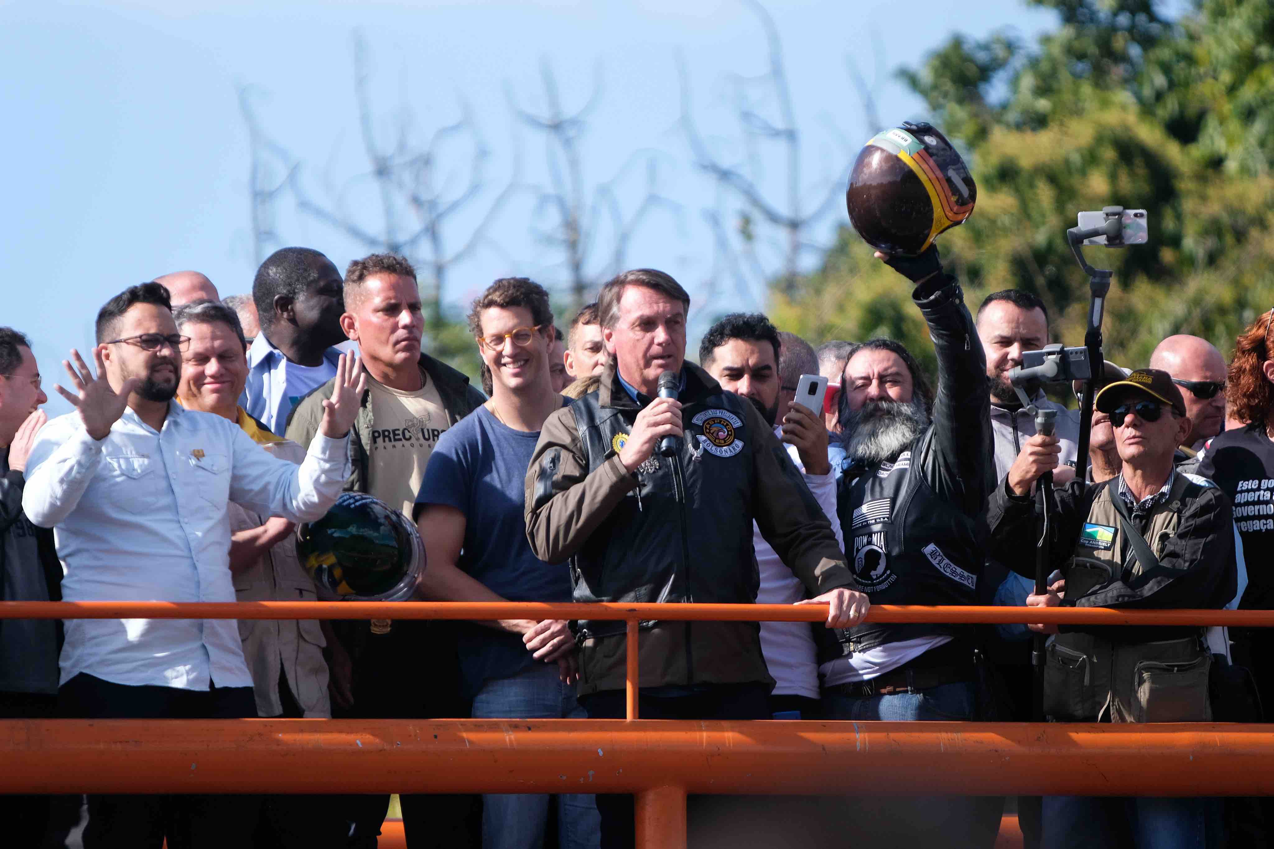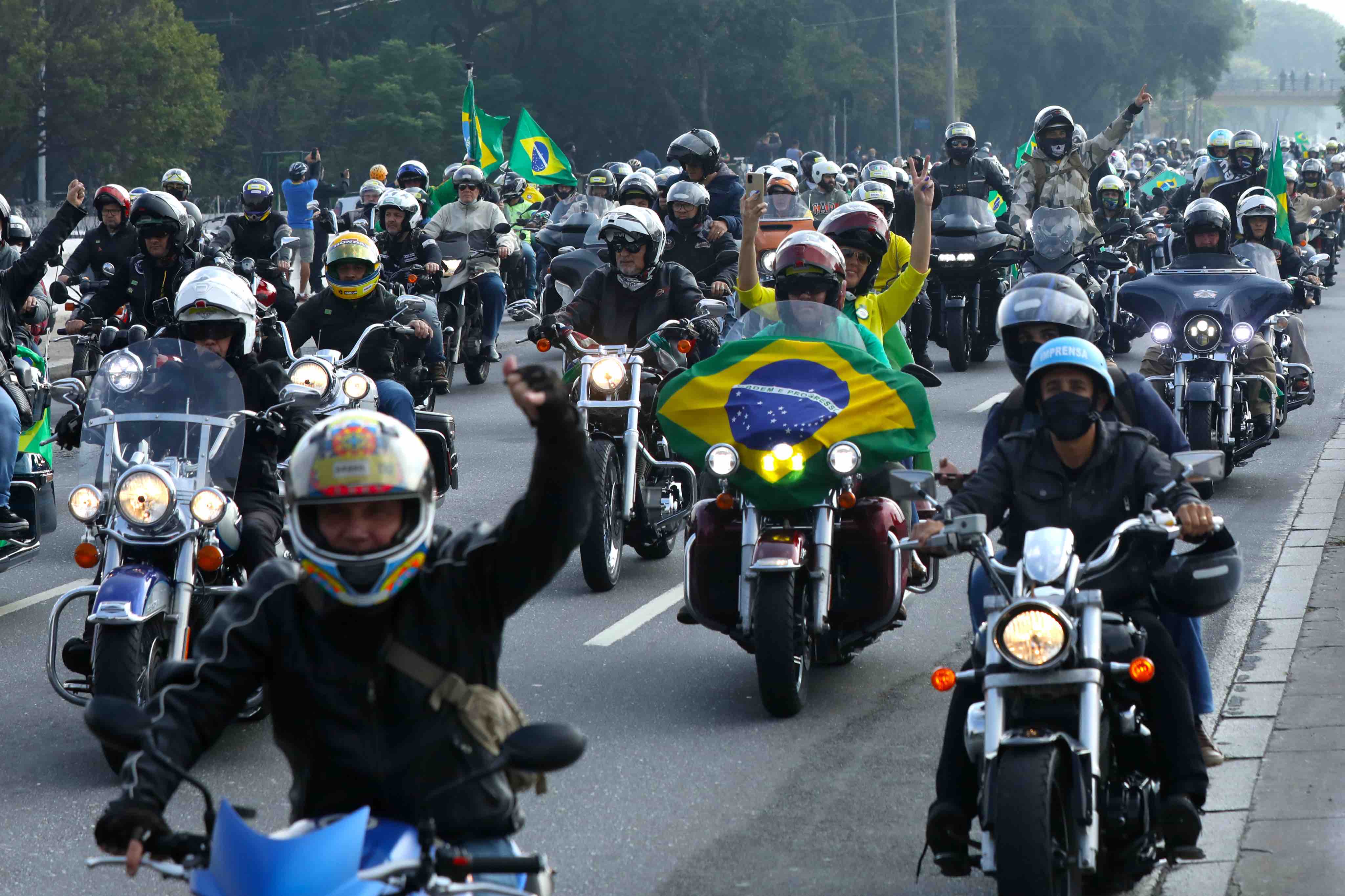 The maskless far-right president, defying a warning from São Paulo’s governor João Doria, waved to thousands of his supporters from his motorcycle.