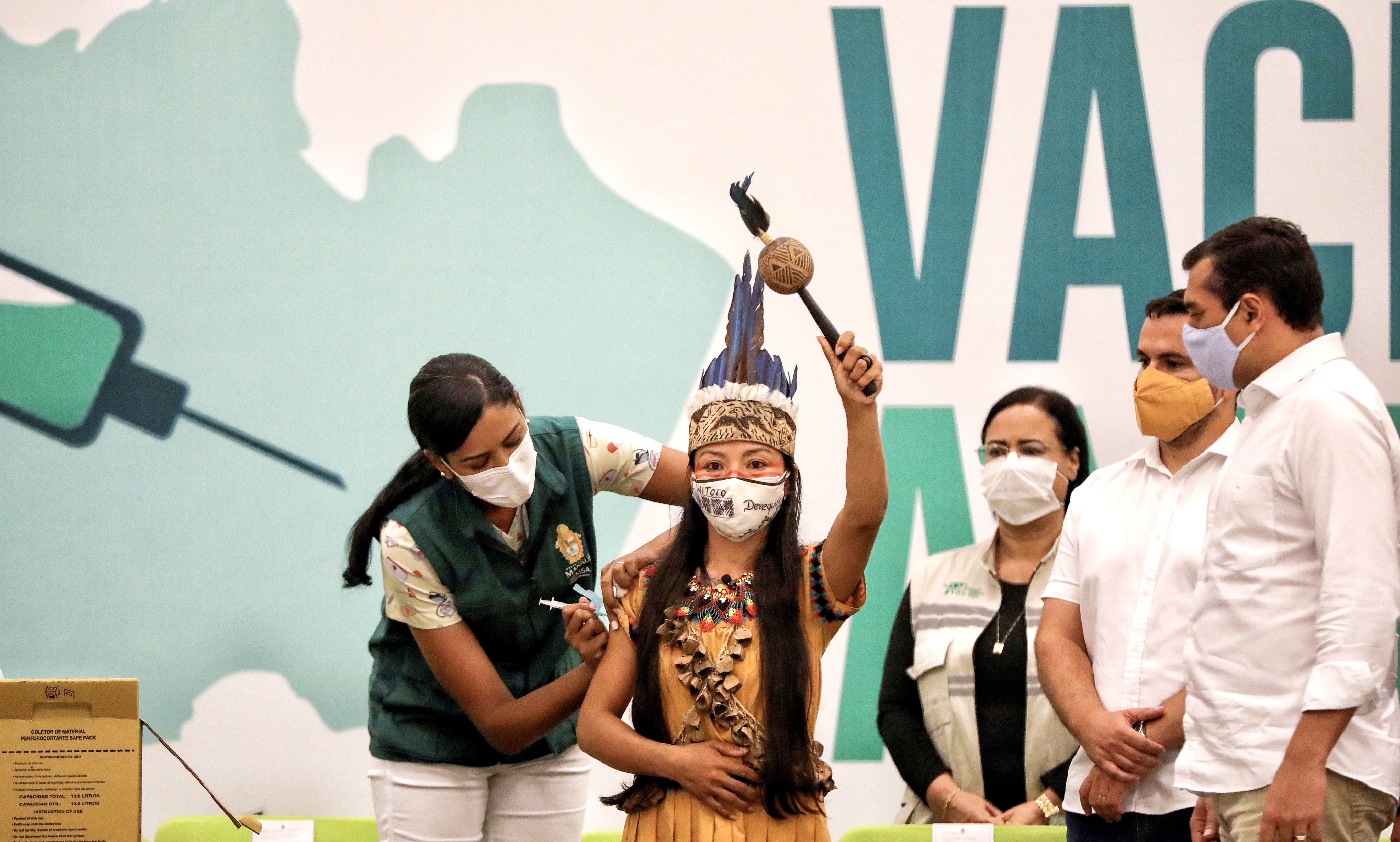 Vanda Ortega, a 33-year-old indigenous Witoto volunteer nurse, received the first dose of CoronaVac, developed by Chinese biopharmaceutical company Sinovac, in Manaus, a city of 2.2 million.