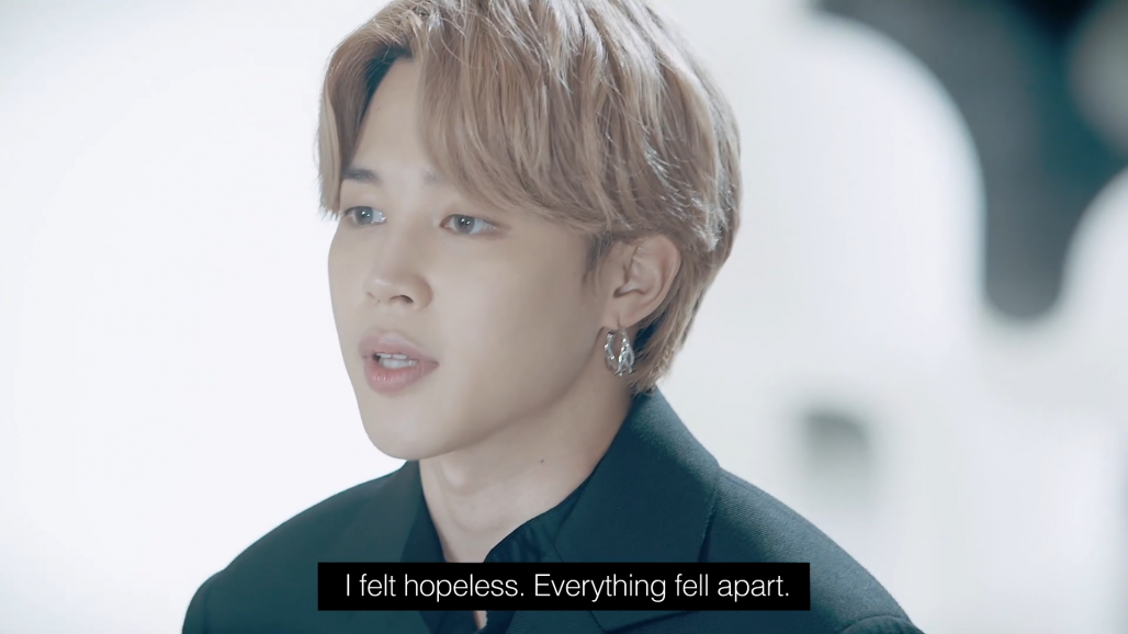 “Yesterday, I was singing and dancing with fans around the world, and now my world had shrunk to a room,” Park Jimin, known as Jimin, said.