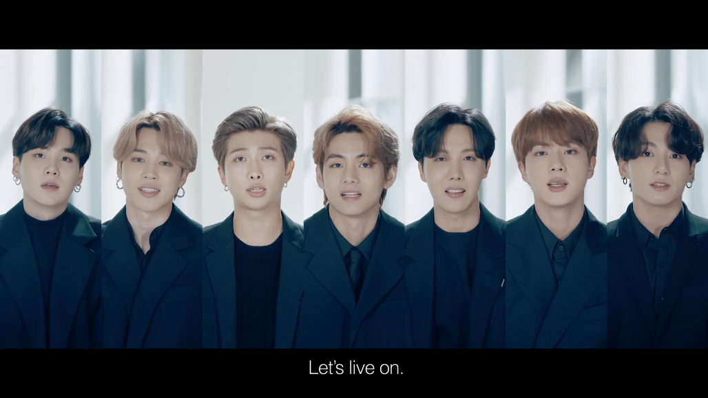 “We’re huddled together tired, but let’s dream again,” he said, before all seven members said collectively, “Life goes on. Let’s live on.”