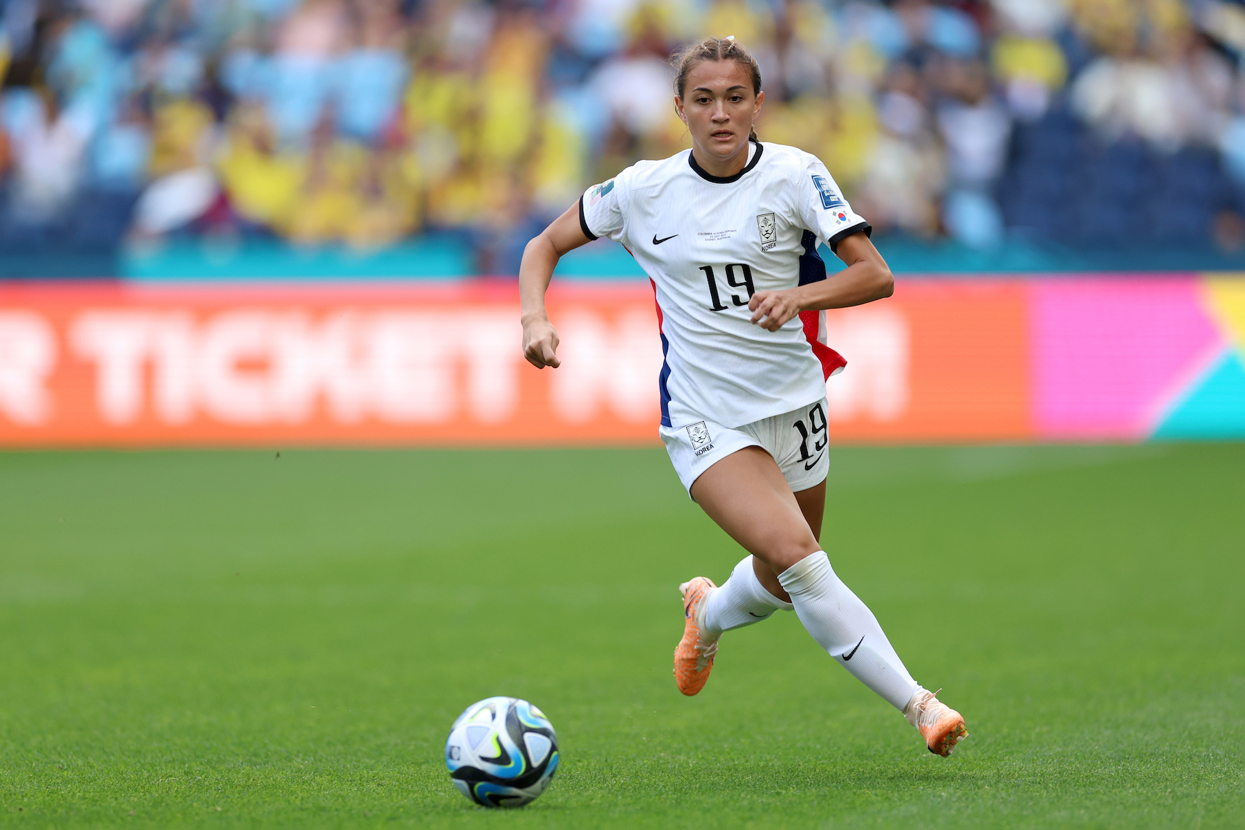Casey Phair of South Korea controls the ball during the FIFA Women’s World Cup Australia & New Zealand 2023 Group H match between Colombia and South Korea at Sydney Football Stadium on July 25, 2023 in Sydney, Australia. (Photo by Sajad Imanian/DeFodi Images via Getty Images)