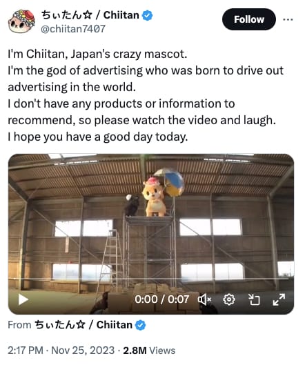 Chiitan☆, a Japanese mascot that describes itself as a 0-year-old fairy baby otter, has undertaken the mission of saving people on X, formerly known as Twitter, from bad advertisements.