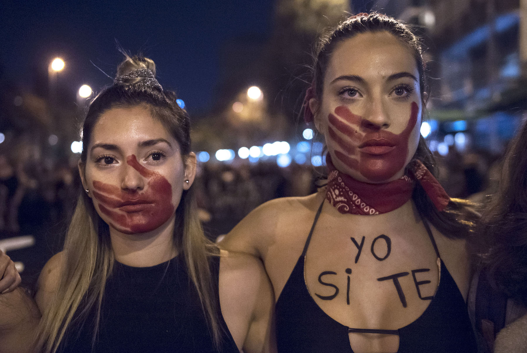 Women take part in a march called by the movement “Ni una menos” (Not One Less) against violence against women in Santiago, on May 11, 2018. (Photo credit should read MARTIN BERNETTI/AFP via Getty Images)