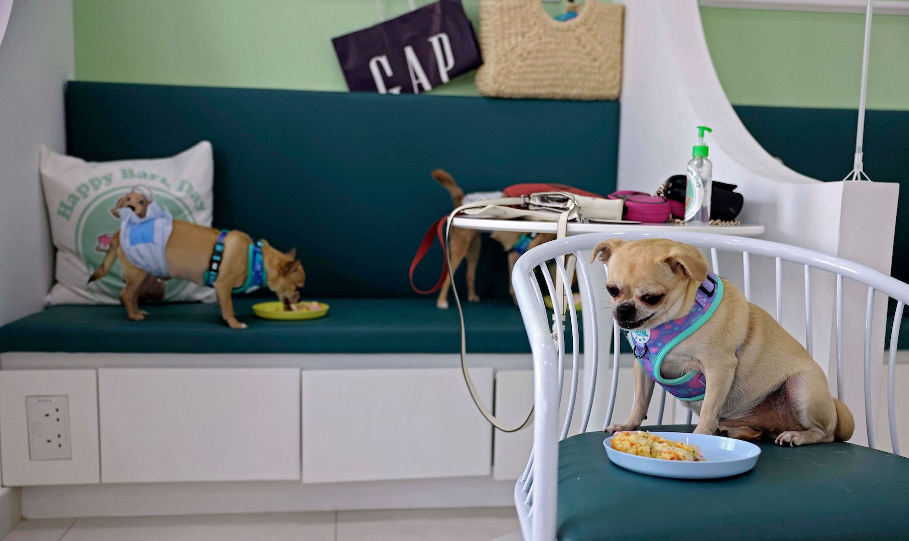 People and their dogs gather to celebrate another dog’s birthday on May 30, 2022 at Happy Bark Day, the first dog cafe in the Gulf emirate of Dubai to serve food, coffee, and cake to dogs only. (Photo by KARIM SAHIB/AFP via Getty Images)People and their dogs gather to celebrate another dog’s birthday on May 30, 2022 at Happy Bark Day, the first dog cafe in the Gulf emirate of Dubai to serve food, coffee, and cake to dogs only. (Photo by KARIM SAHIB/AFP via Getty Images)