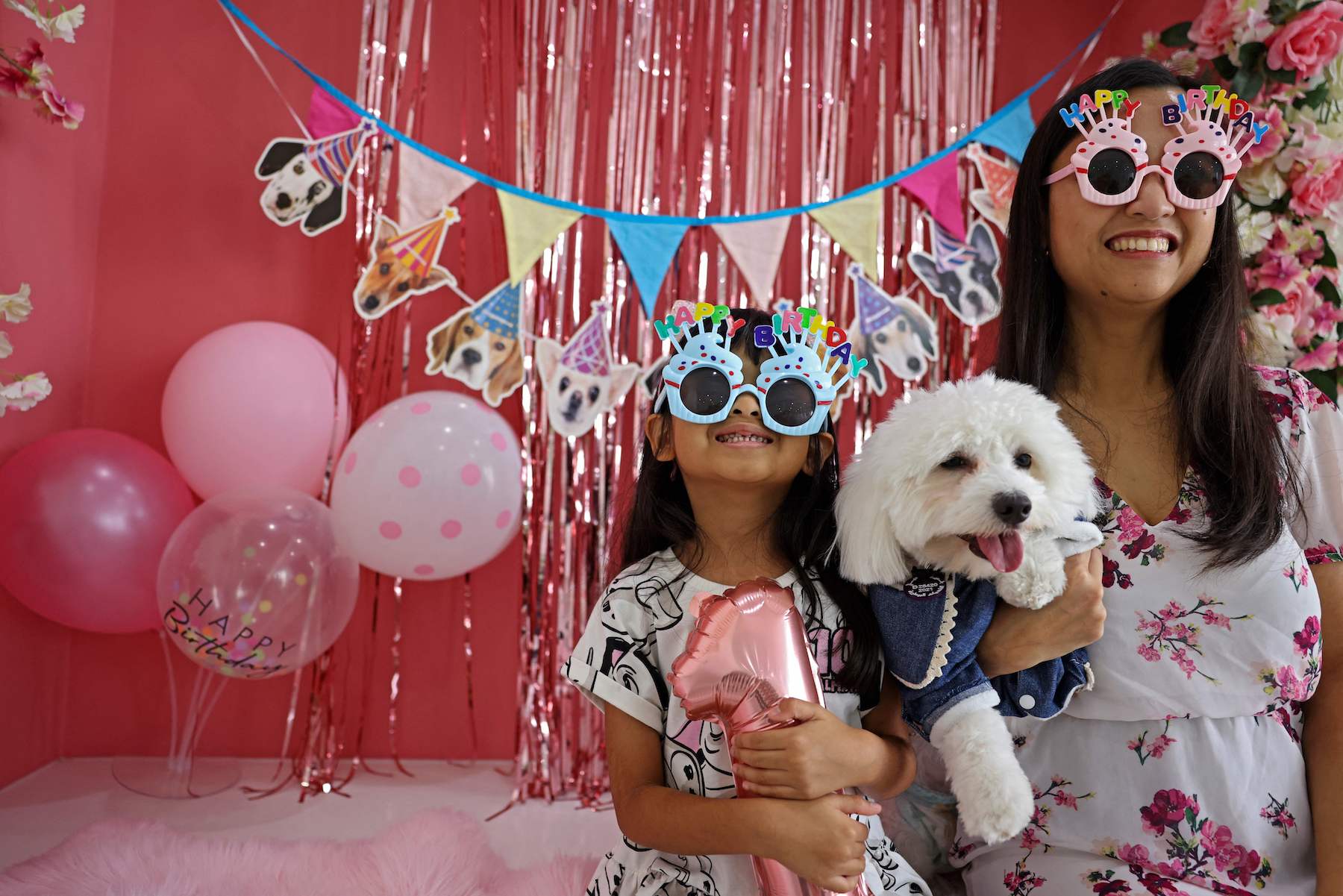 The dog Blanca celebrates her first birthday on May 30, 2022 at Happy Bark Day, the first dog cafe in the Gulf emirate of Dubai to serve food, coffee, and cake to dogs only. (Photo by KARIM SAHIB/AFP via Getty Images)