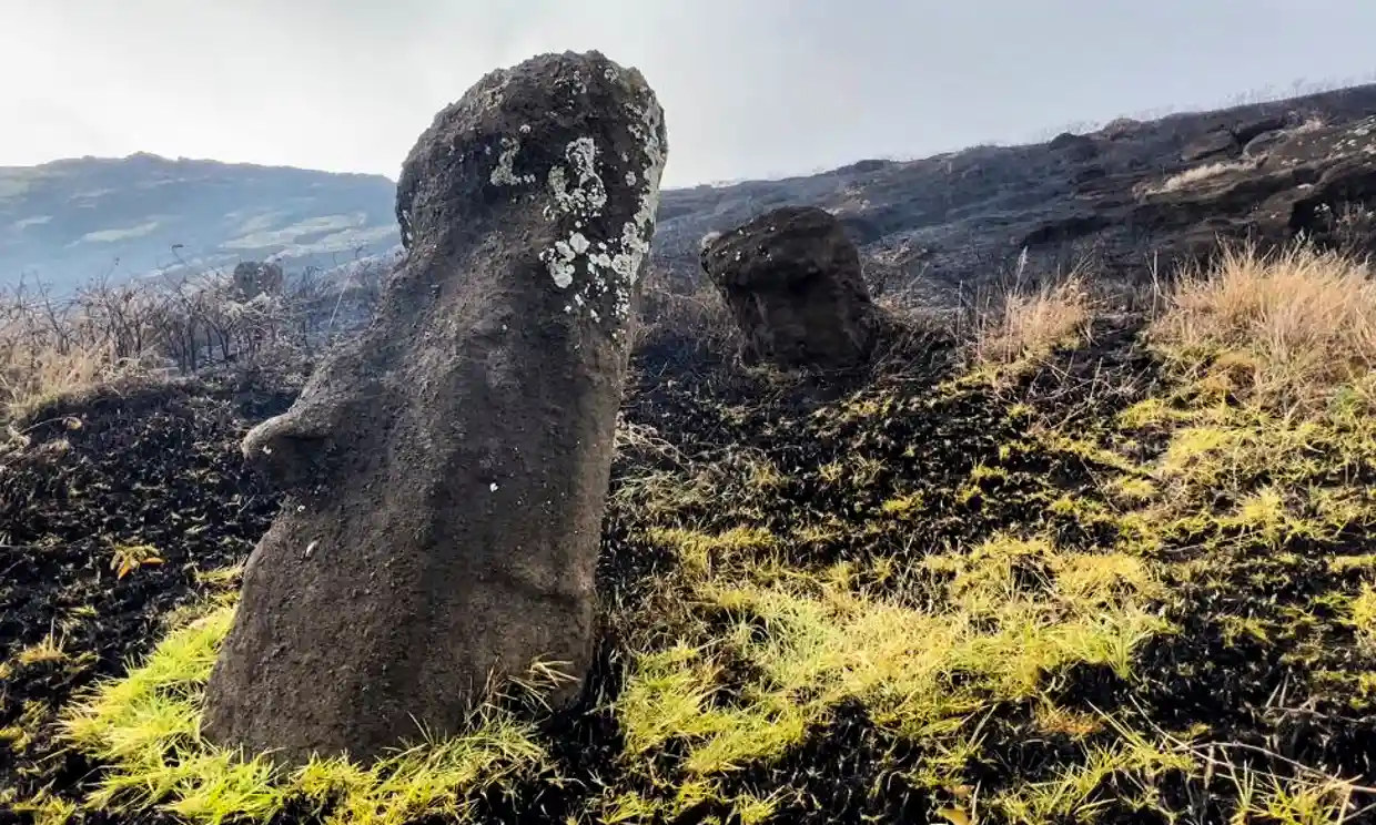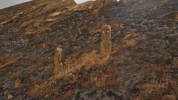 Images shared on social media showed some of the moai charred, standing in a burnt landscape.