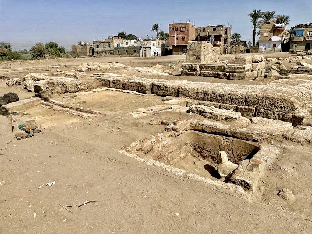 The remains of a shrine and a stone slab with both Demotic and hieroglyphic markings were also discovered.