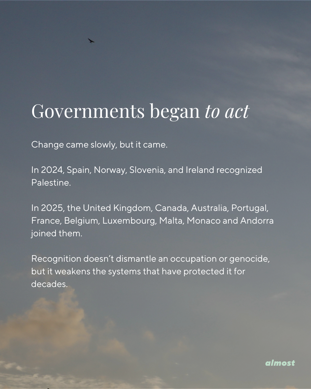 Recognition doesn’t dismantle an occupation or genocide, but it weakens the systems that have protected it for decades.
