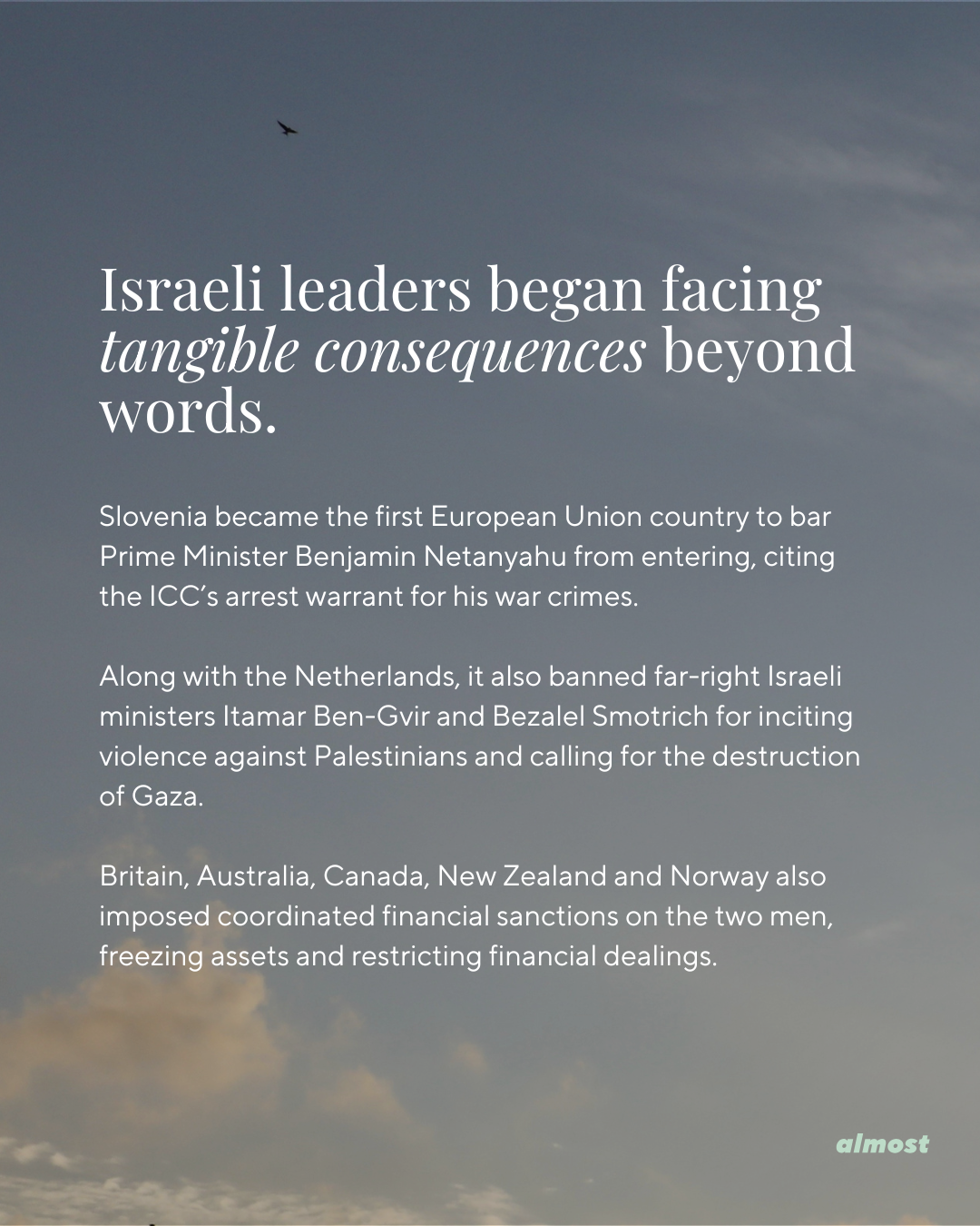 Israeli leaders began facing tangible consequences beyond words.