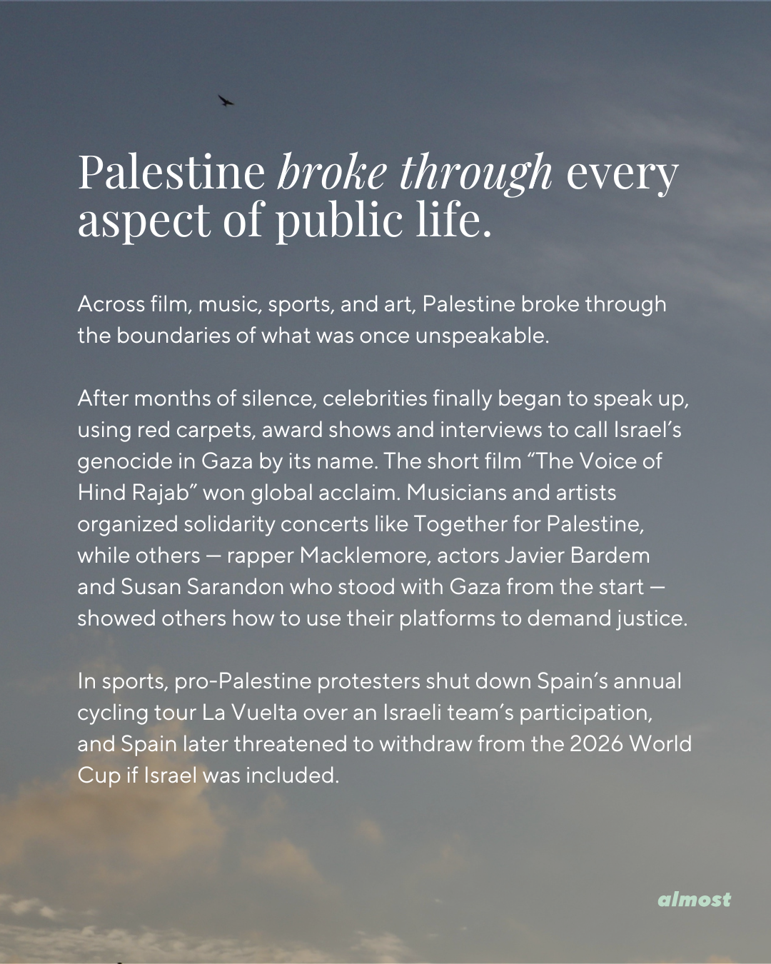 Across film, music, sports, and art, Palestine broke through the boundaries of what was once unspeakable.
