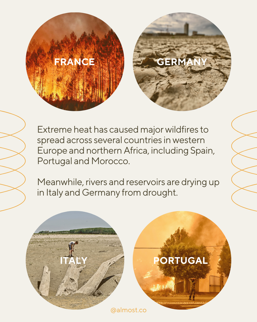 Meanwhile, rivers and reservoirs are drying up in Italy and Germany from drought.
