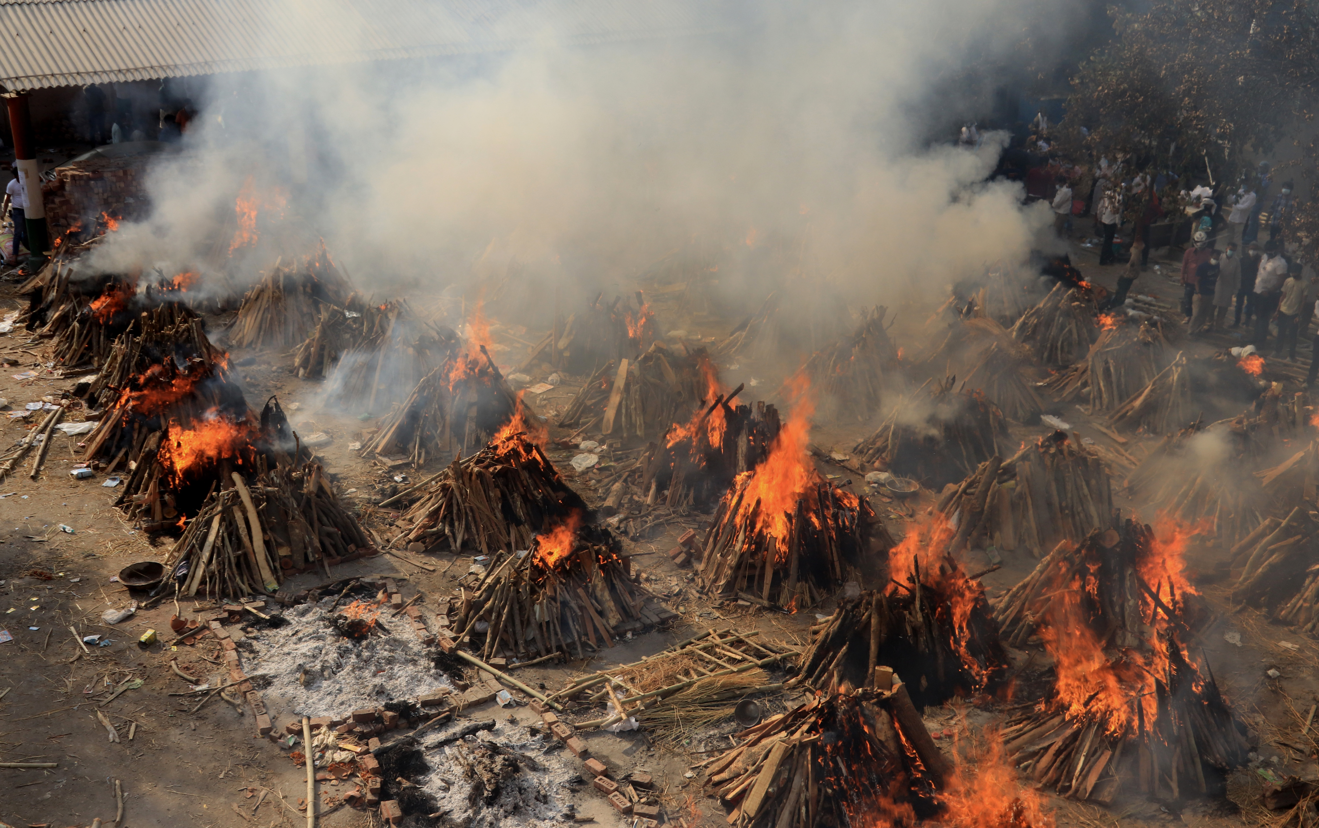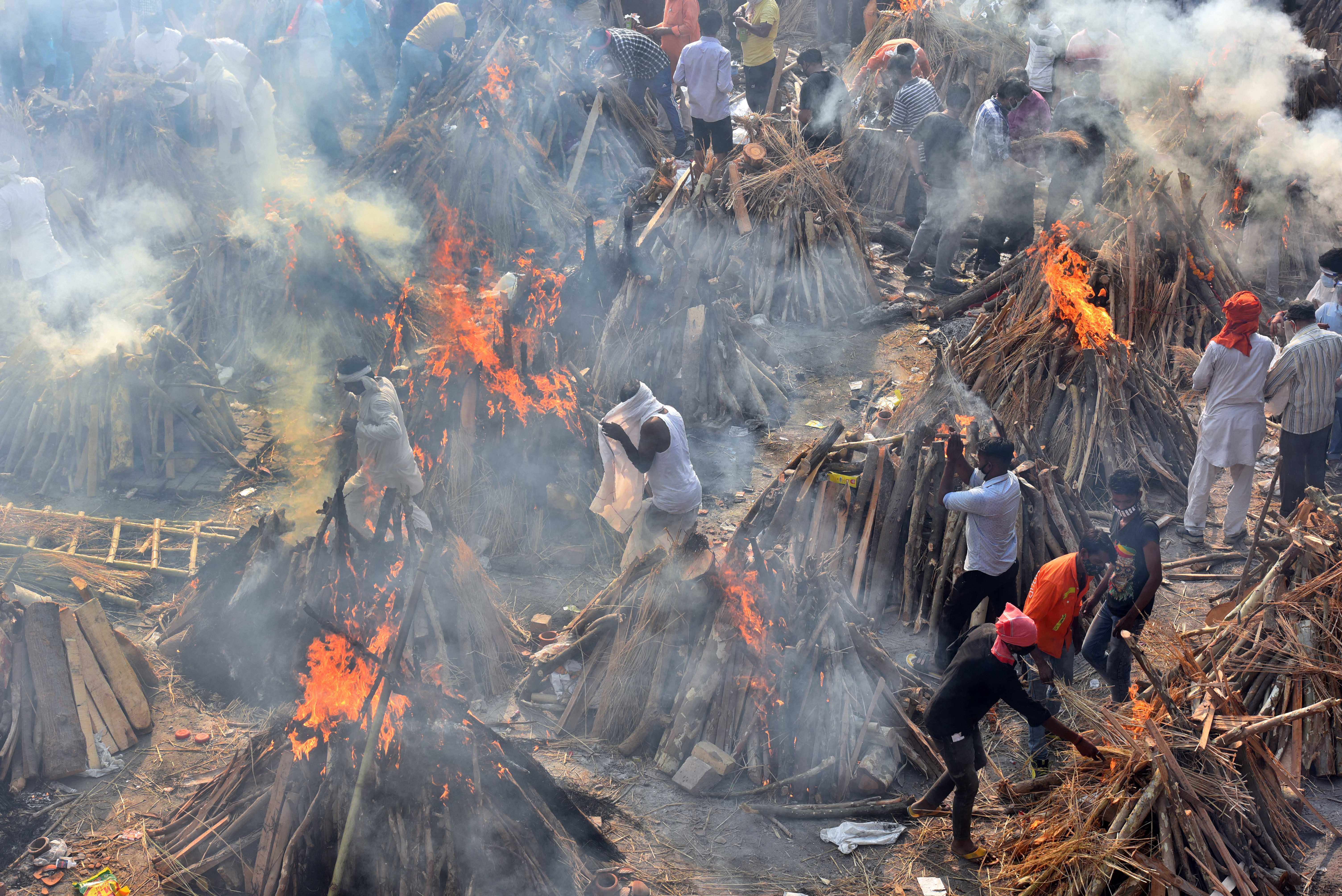 Crematoriums in India have been forced to build makeshift funeral pyres in parks, parking lots and empty grounds as the country buckles under a second wave of the coronavirus, the worst surge in the world since the pandemic began.
