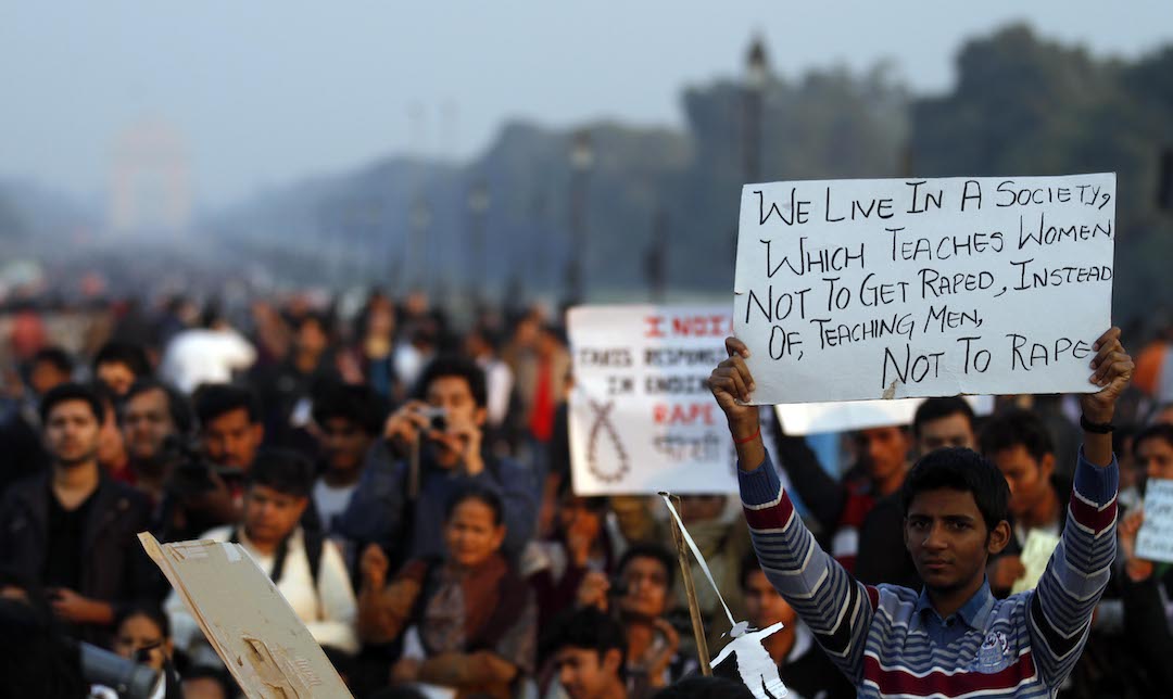 NEW DELHI, INDIA – DECEMBER 22: Demonstrators during a protest at Vijay Chowk, following a brutal gang rape of 23 year Para medical student in a moving bus on December 22, 2012 in New Delhi, India. (Photo by Jasjeet Plaha/Hindustan Times via Getty Images)