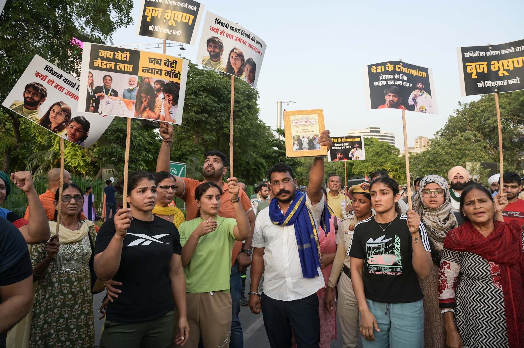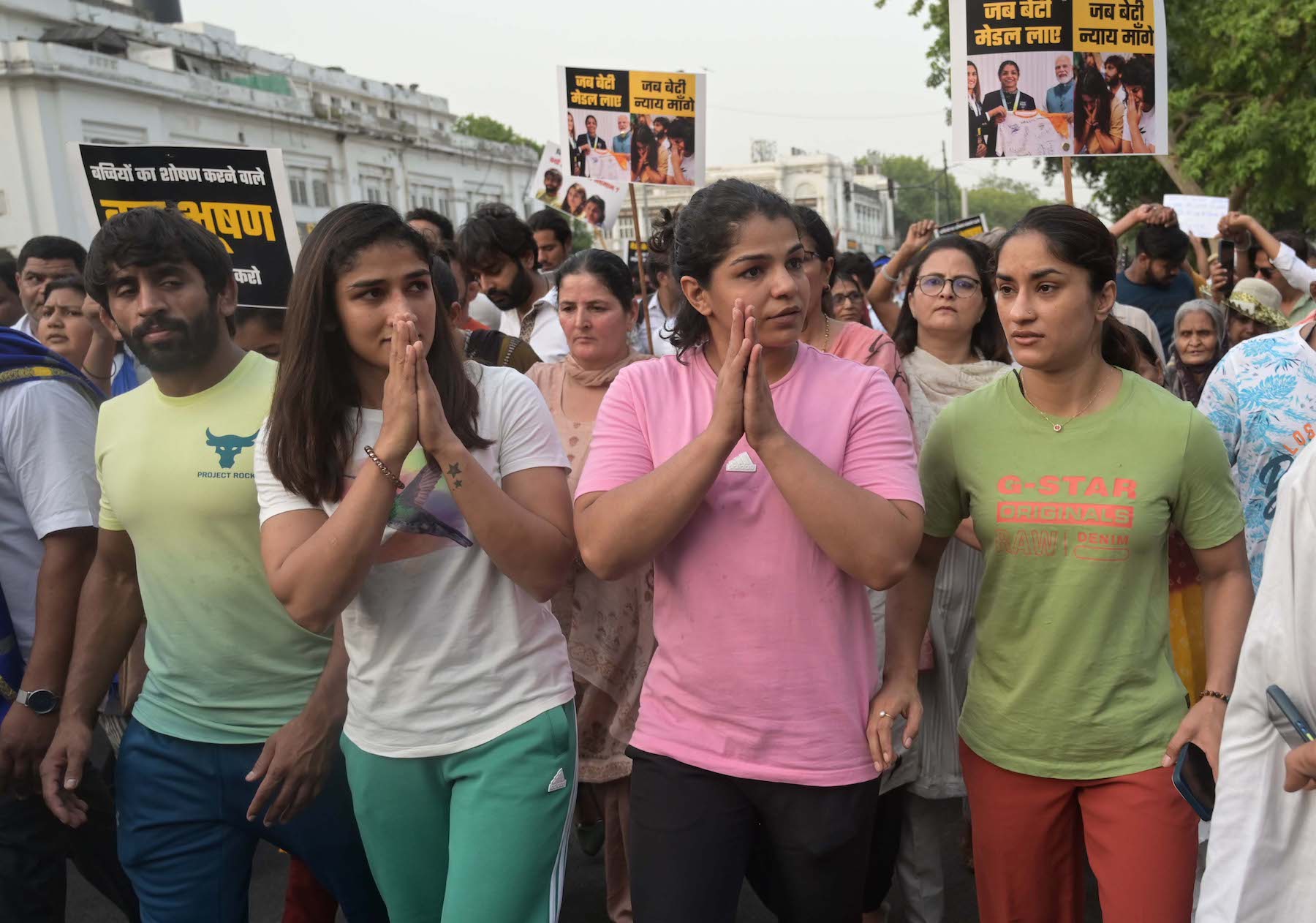 The wrestlers say they will not move until Singh is arrested.