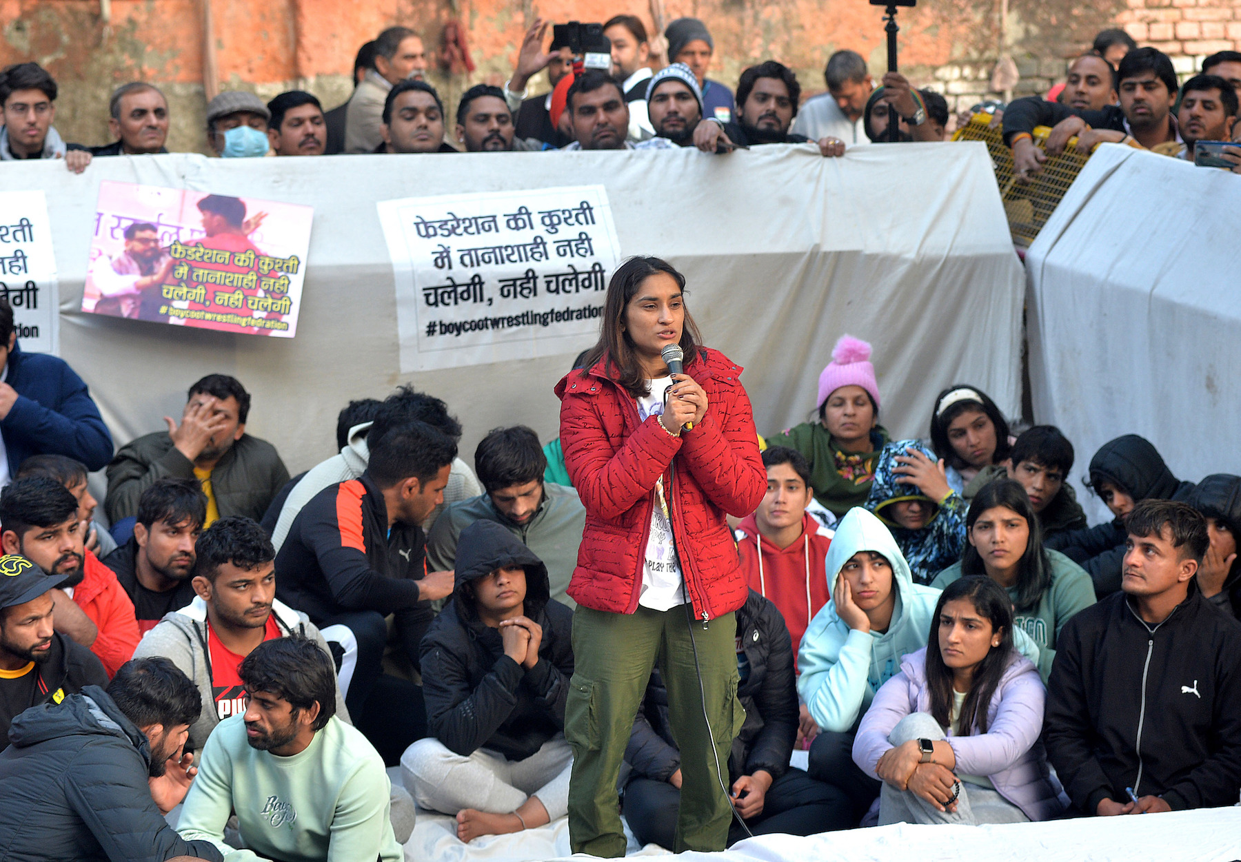 Alongside their supporters, the wrestlers have been sleeping on mattresses and under mosquito nets, withstanding extreme weather conditions and alleged use of force by police.