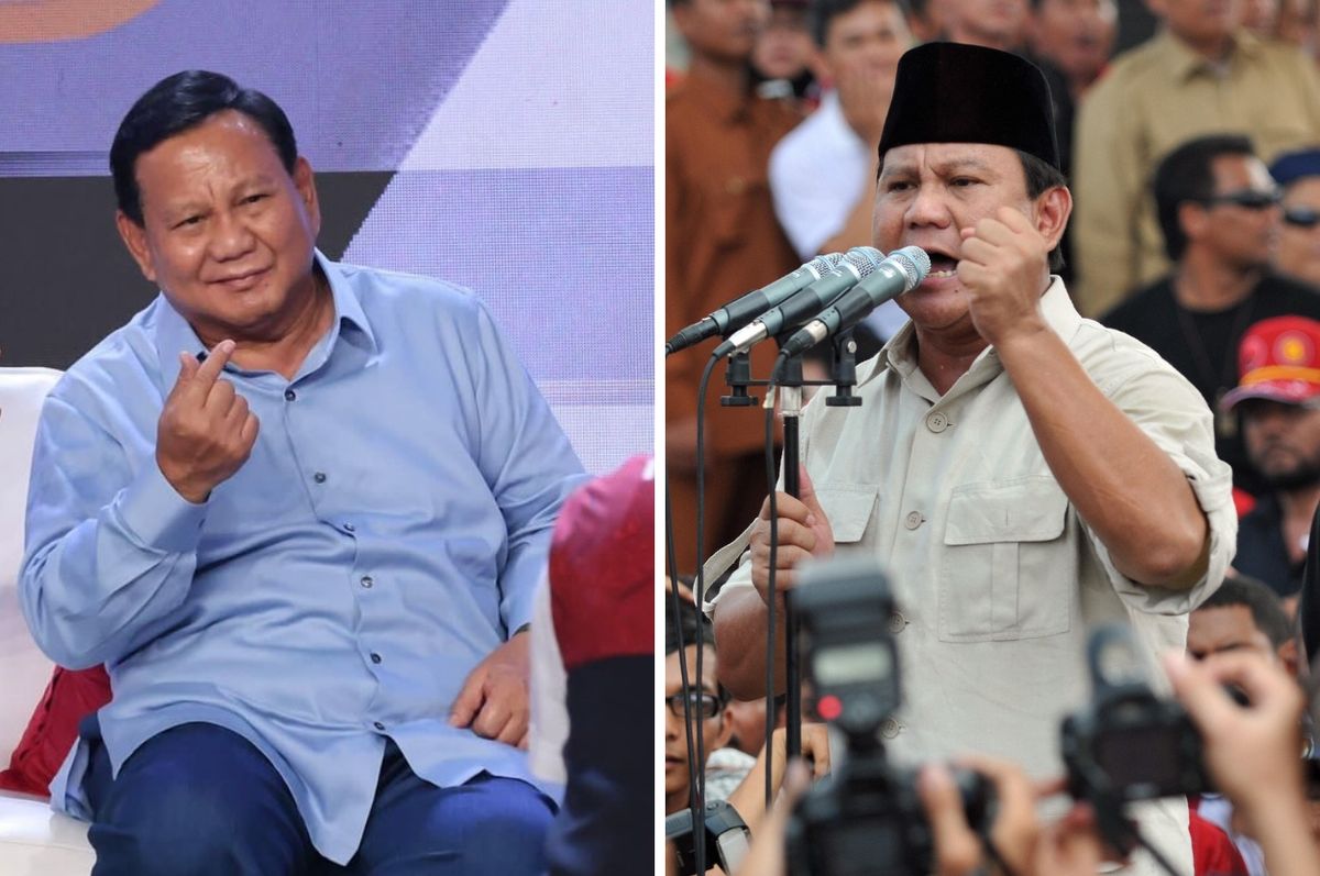 This photo taken on on February 14, 2024 shows Presidential candidate and Indonesia's Defence Minister Prabowo Subianto (L) speaks on the stage with vice presidential candidate Gibran Rakabuming Raka. (Photo credit: Getty)