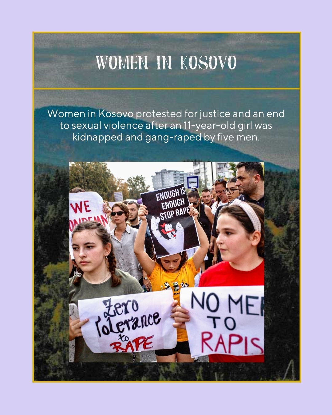 Women in Kosovo protested for justice and an end to sexual violence after an 11-year-old girl was kidnapped and gang-raped by five men.