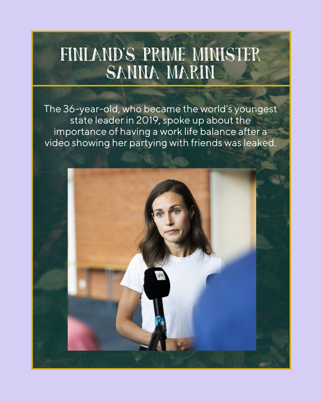 The 36-year-old, who became the world’s youngest state leader in 2019, spoke up about the importance of having a work life balance after a video showing her partying with friends was leaked.