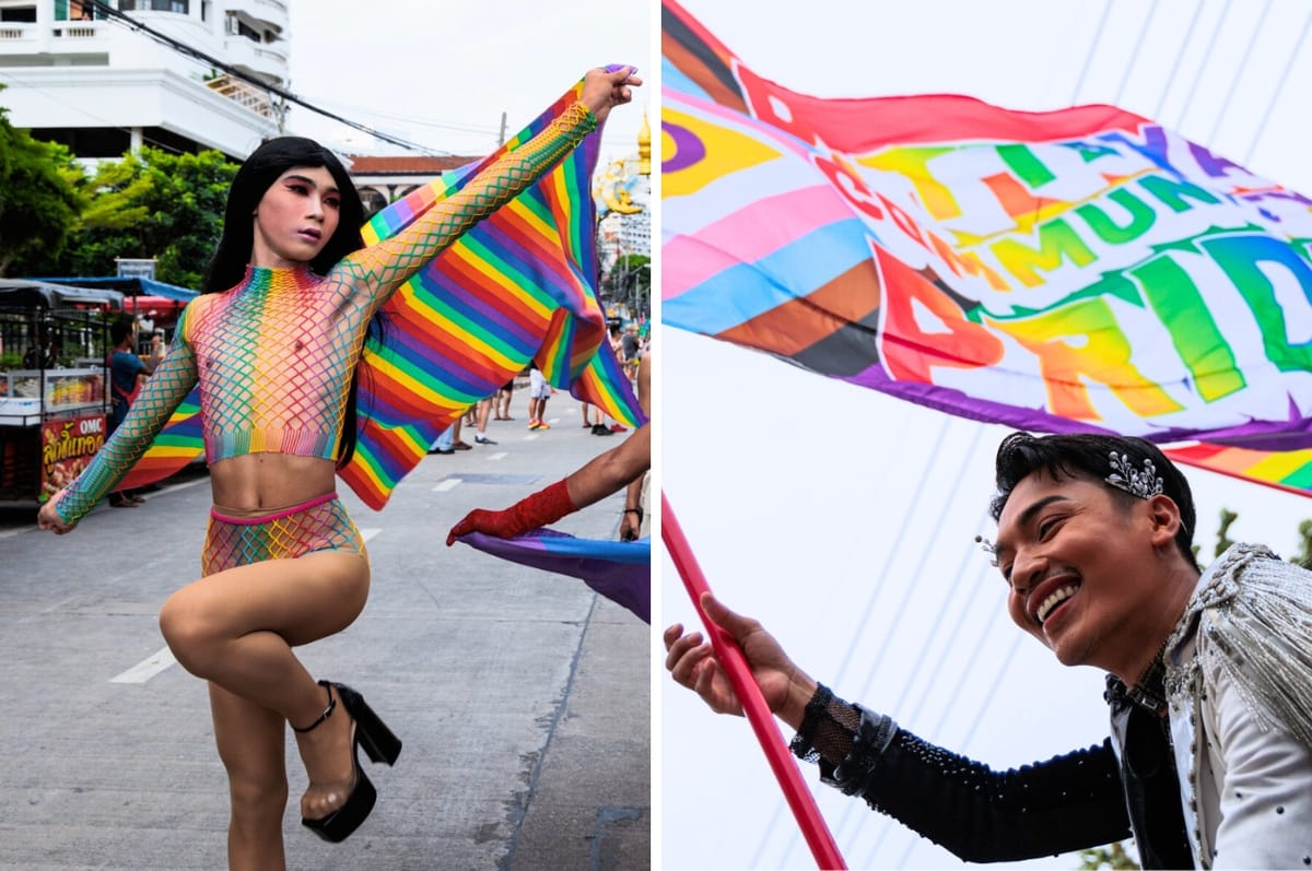 Marchers walk with a giant rainbow flag as the LGBT community celebrates Pride. (Photo by Awakening/Getty Images)