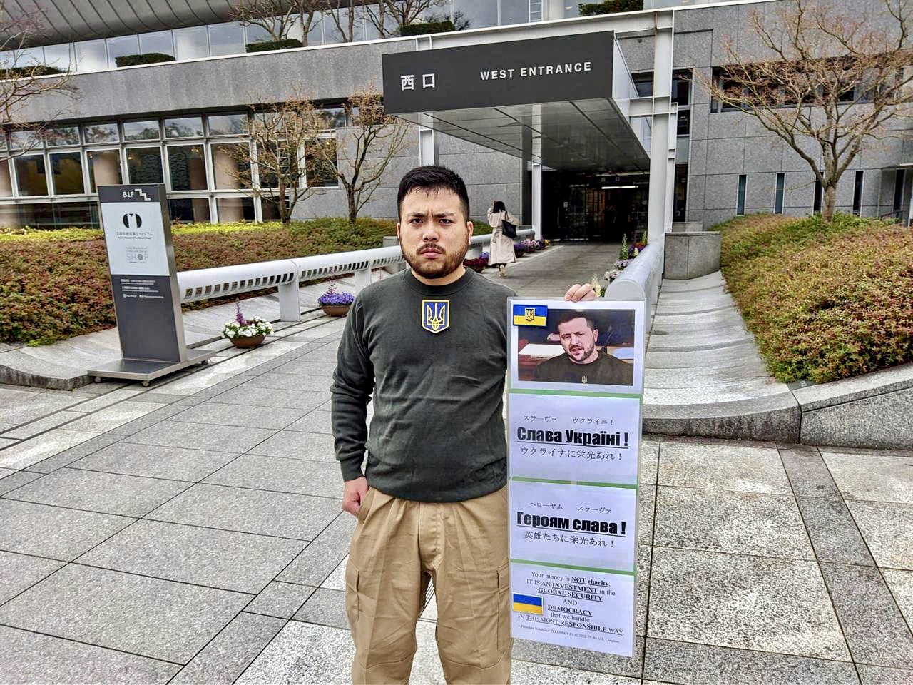 He also carried a sign with a message from Zelensky’s speech to the US Congress in December.