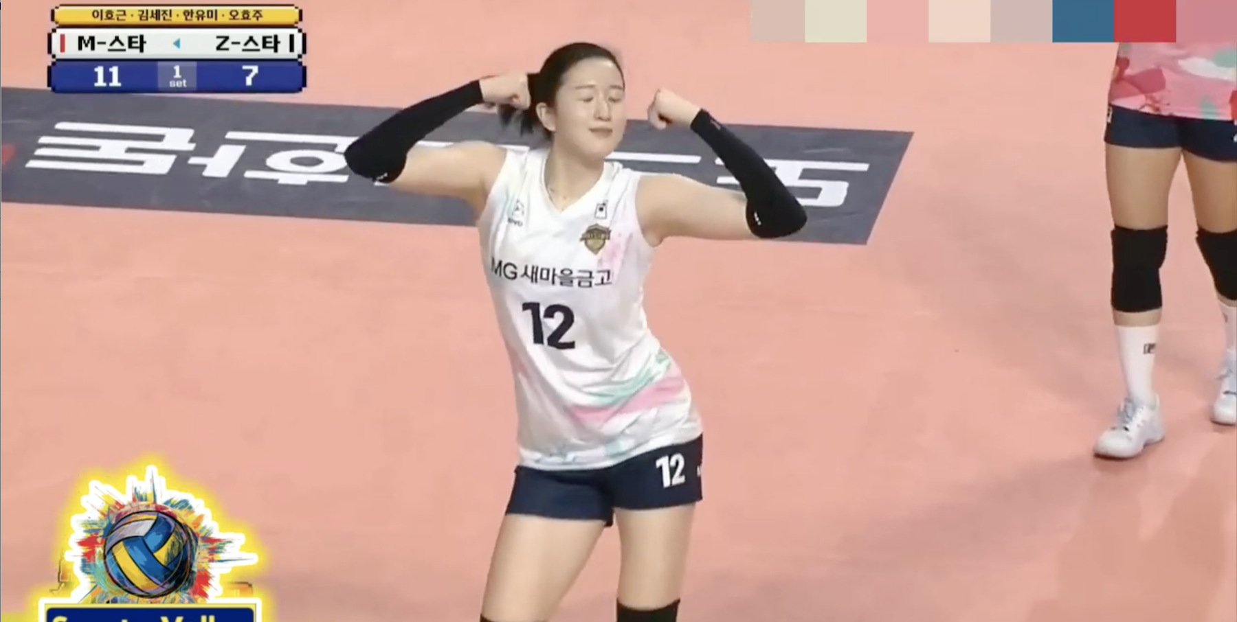 South Korean volleyball player Lee Da-hyun showcased her dance moves after scoring during a match.