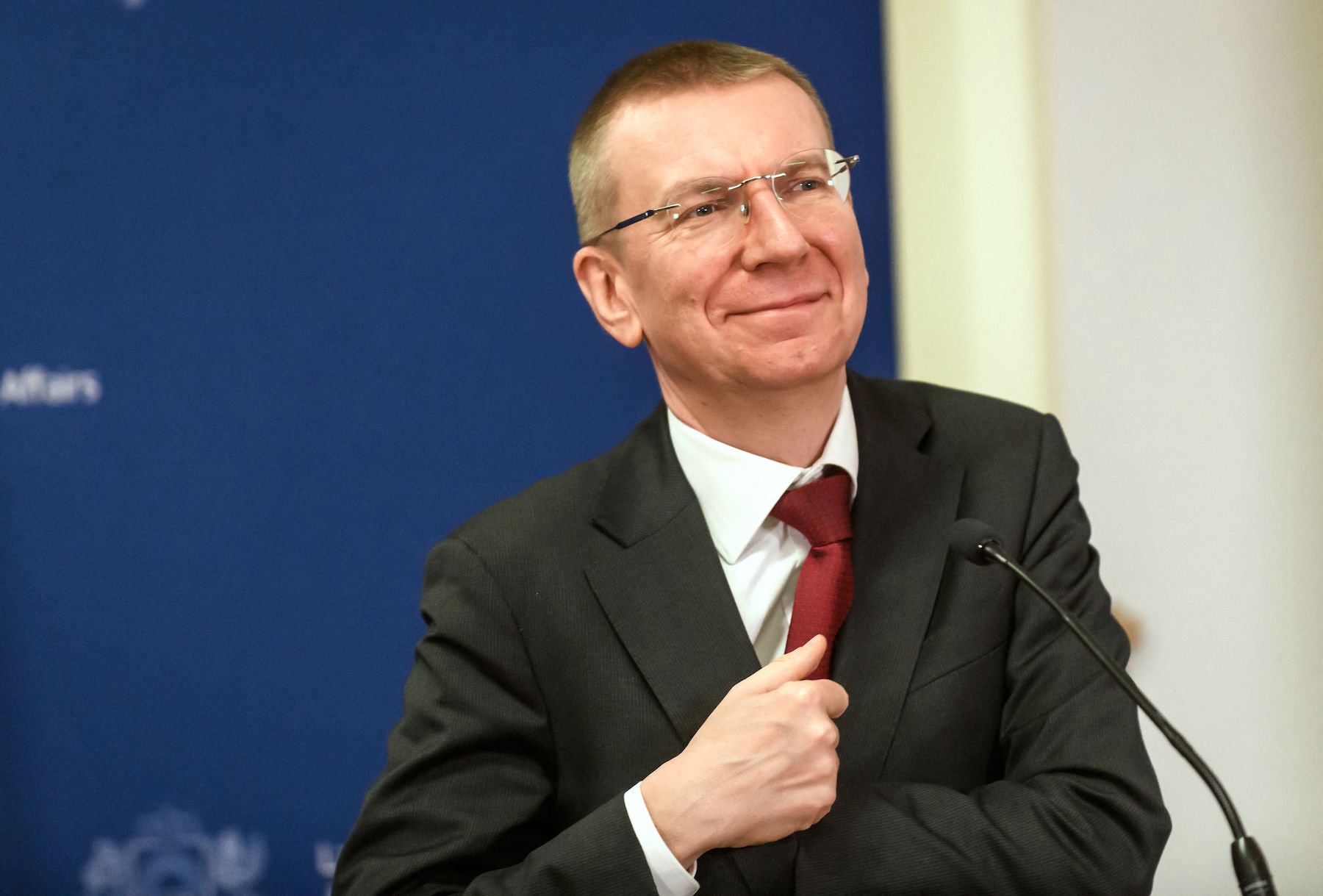 Latvia’s Foreign Affairs Minister Edgars Rinkevics attends a joint press conference with Finland’s Foreign Affairs Minister after bilateral talks on January 25, 2023 in Riga, Latvia.(Photo by GINTS IVUSKANS/AFP via Getty Images)