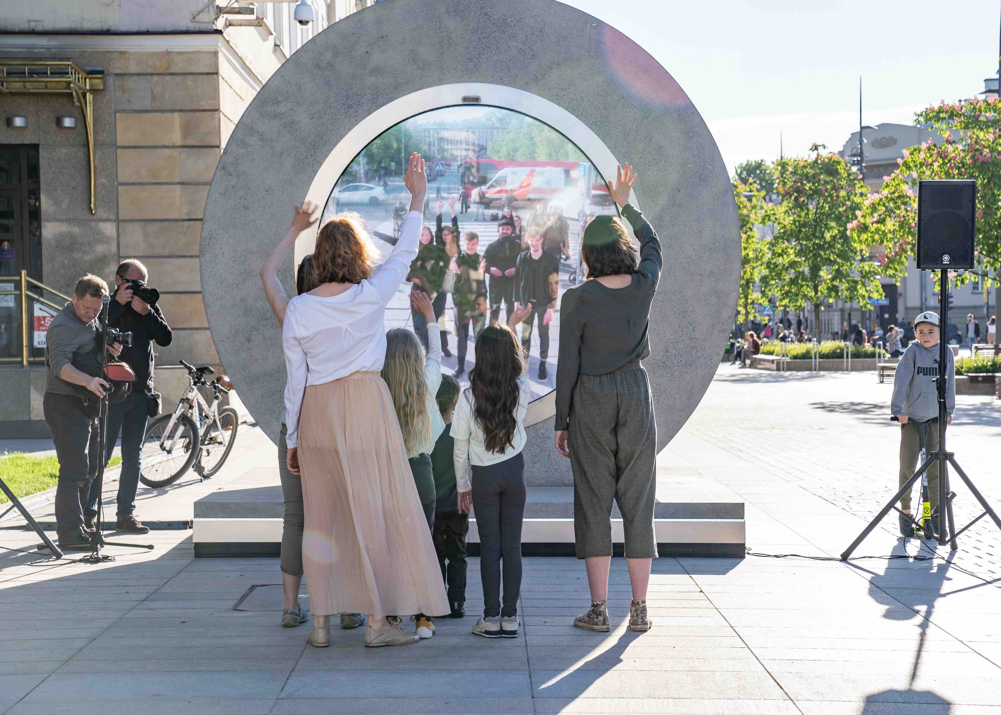 The portal, which have large screens and cameras that broadcast live footage of the cities, were erected on May 26 outside the Vilnius Train Station and Lubin’s Central Square, around 600 kilometers (375 miles) away.
