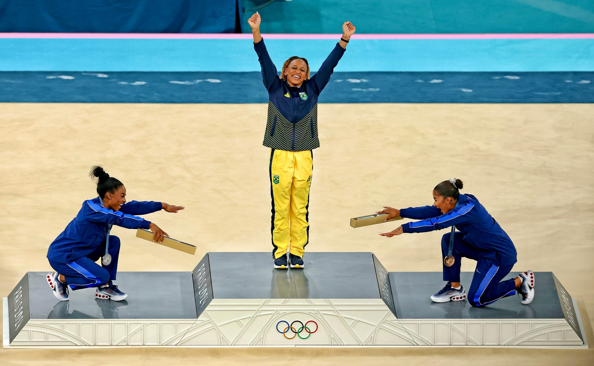 2. Team USA gymnasts Simone Biles and Jordan Chiles bowed to Brazil’s Rebeca Andrade in an iconic moment