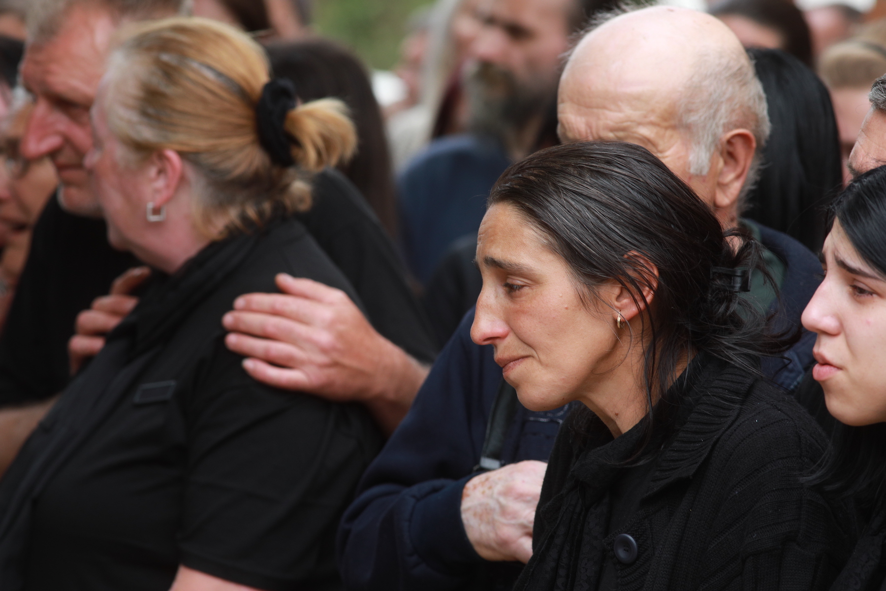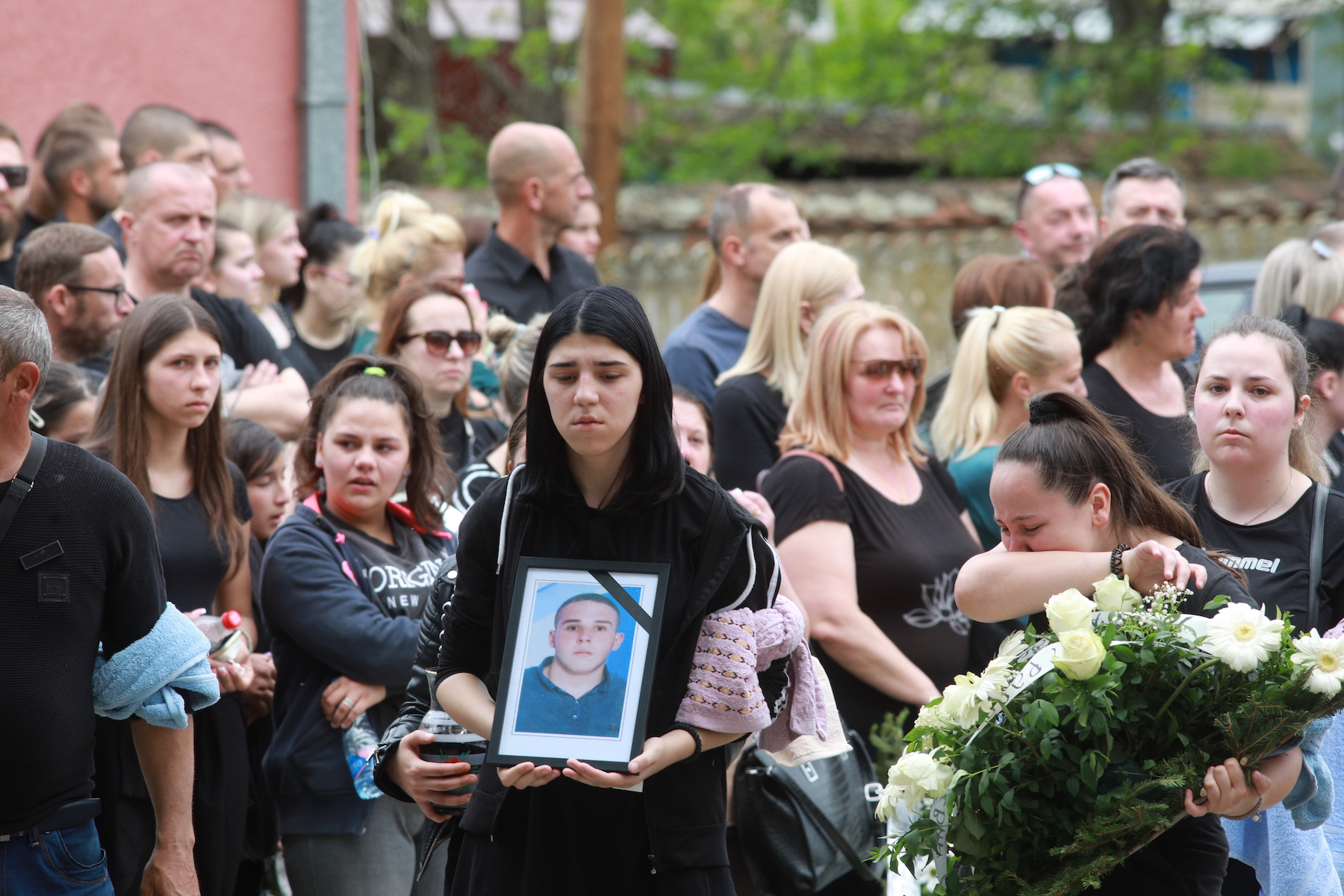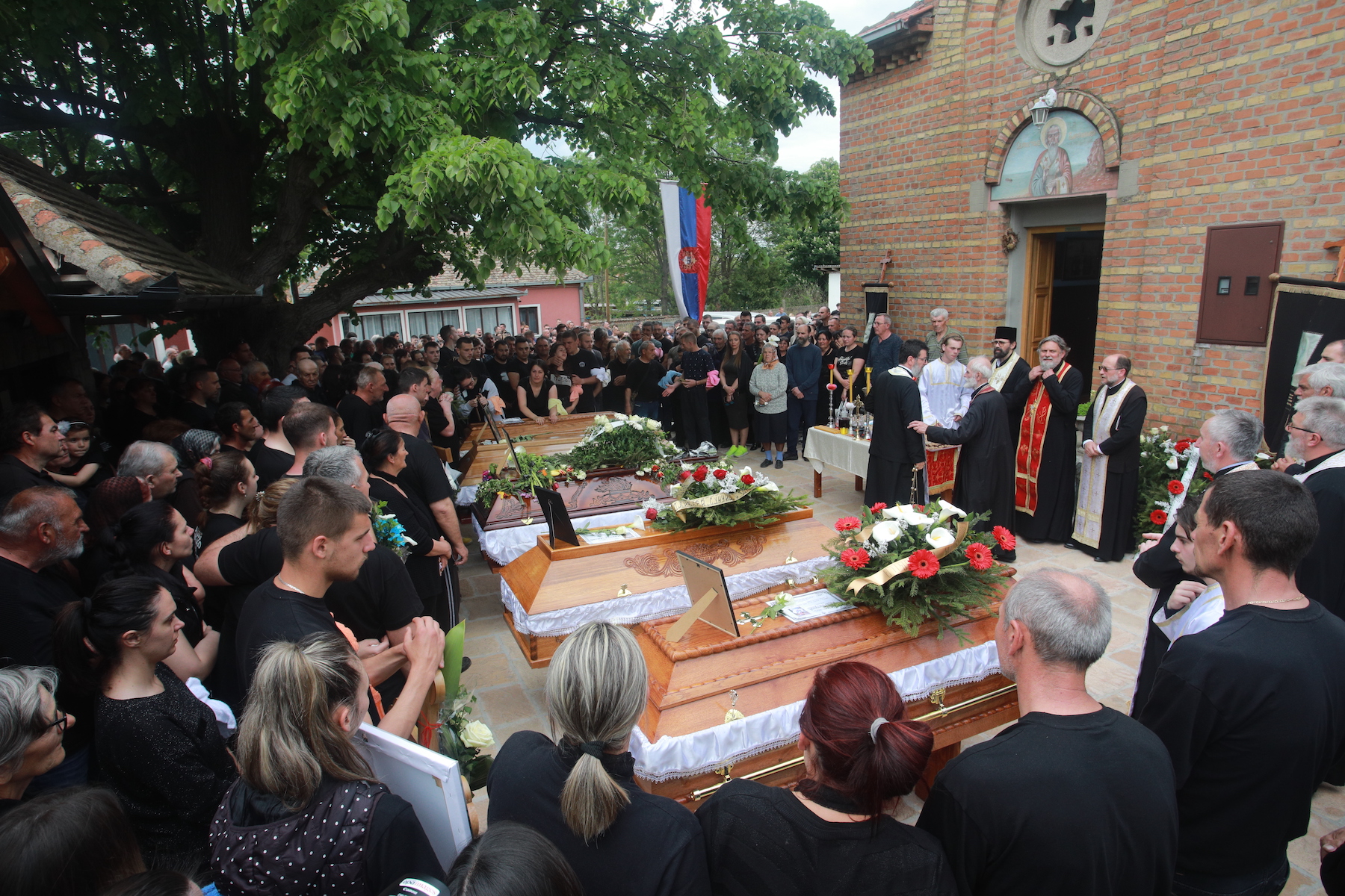 People attend the funeral of five victims killed in mass shooting, in Malo Orasje village of Smederevo, Serbia on May 6, 2023. (Photo by Milos Miskov/Anadolu Agency via Getty Images)