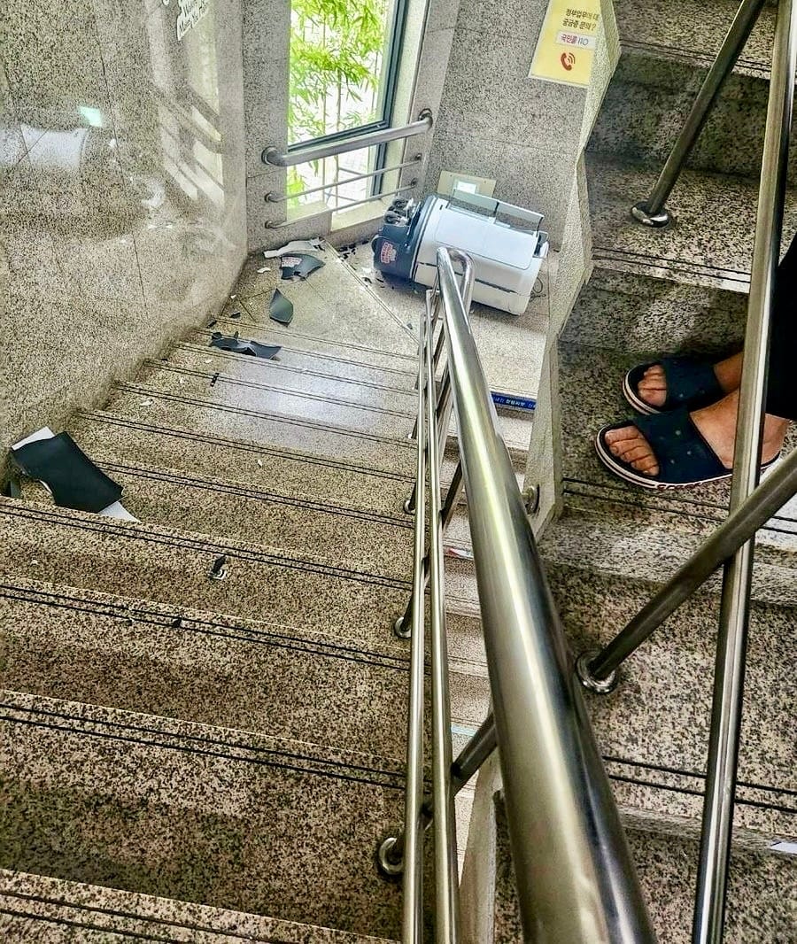 Known as the “Robot Supervisor”, it was found shattered at the bottom of a two-meter staircase in the Gumi city council building.