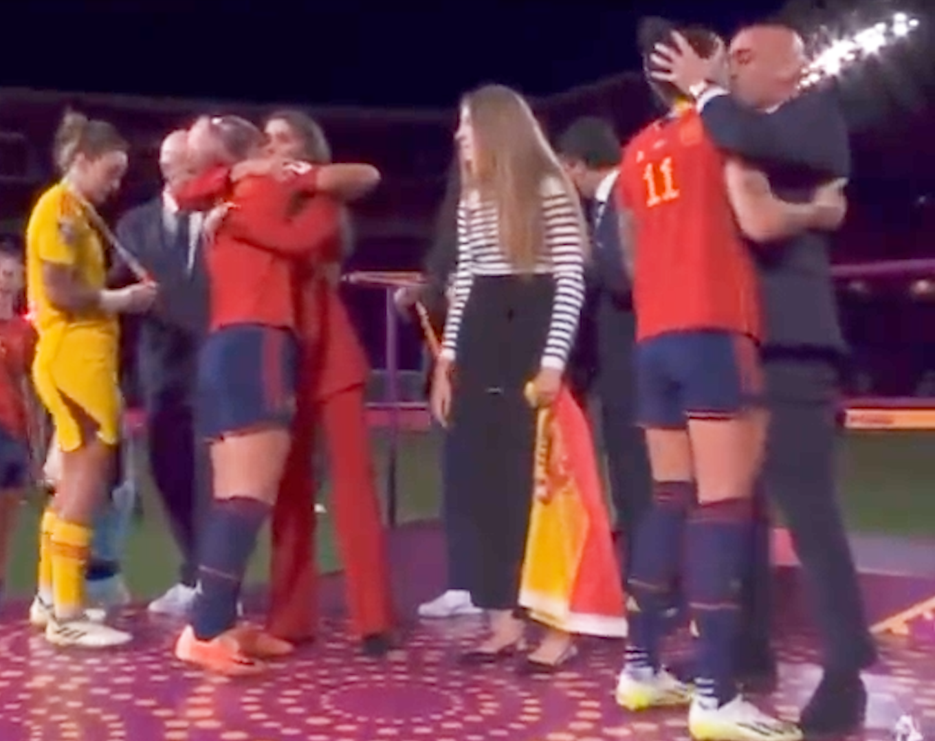 In a video of the moment, Rubiales can be seen hugging Hermoso, before grabbing her head and kissing her on the mouth.