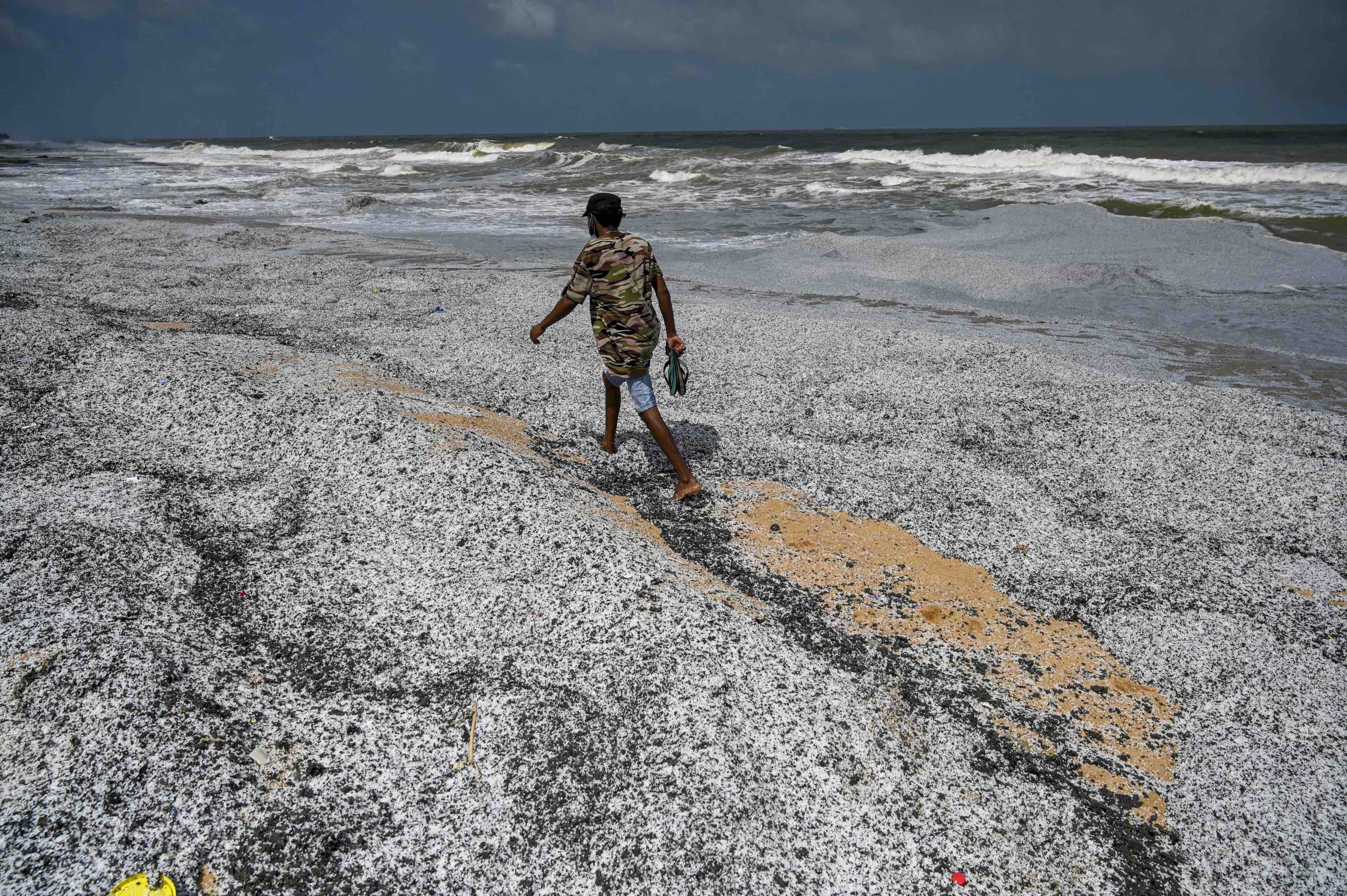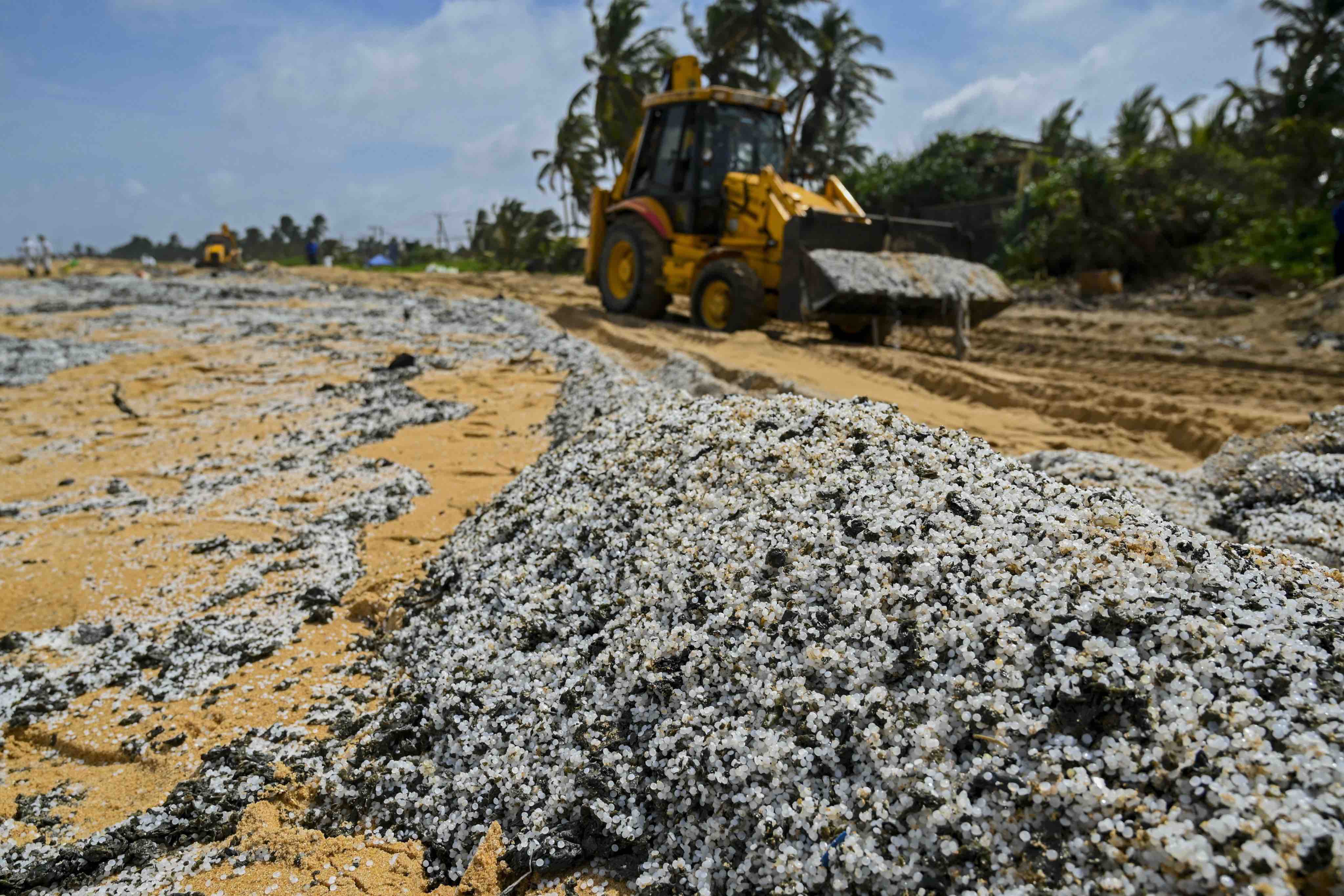 Although the worst part of the fire is now under control, the chemical spill has already caused harm to Sri Lanka’s coastline, including at popular tourist destinations, Negombo and Kalutara, coating the beach and ocean in microplastic granules and oil.