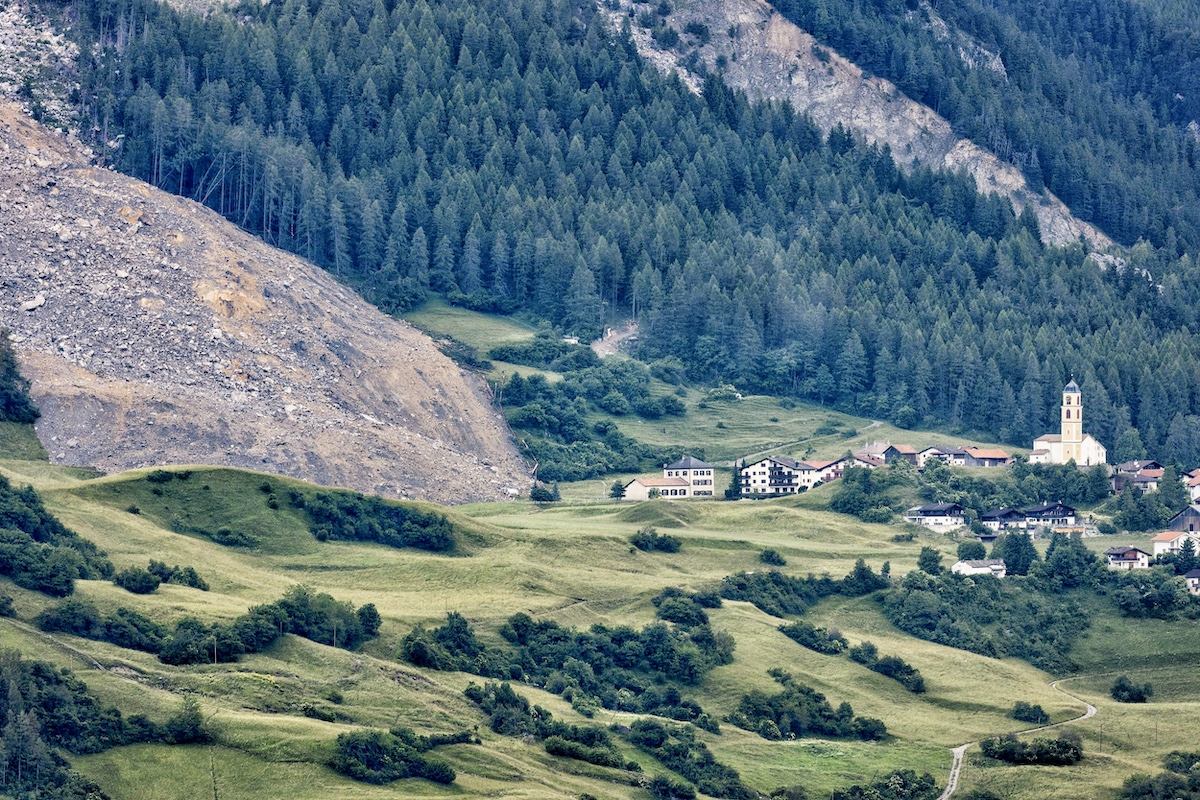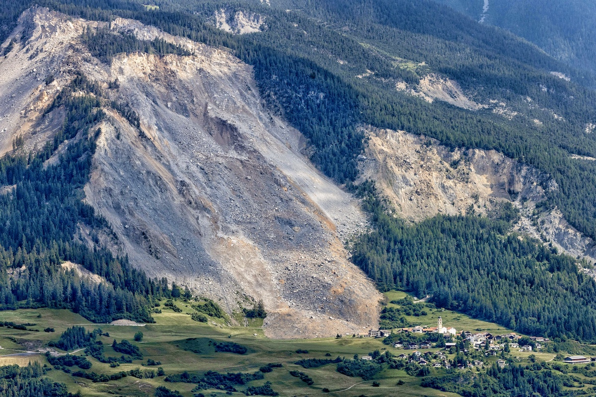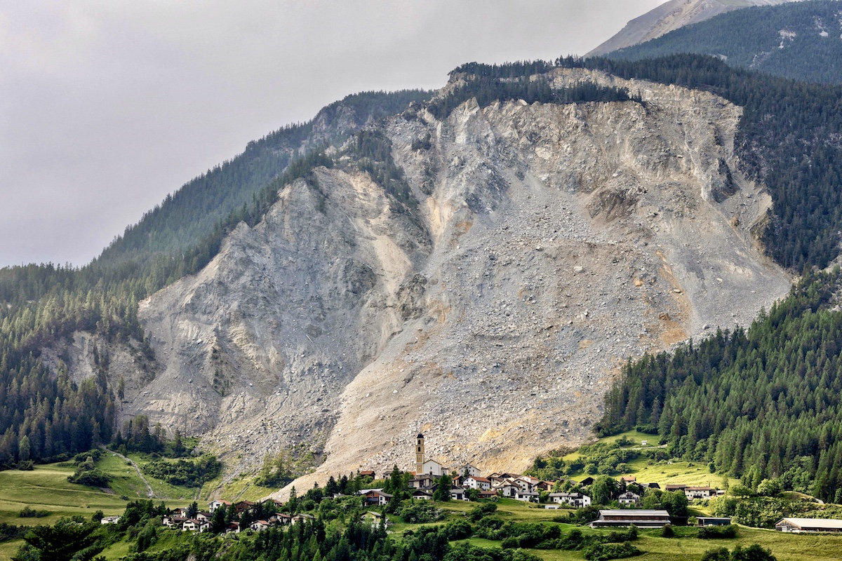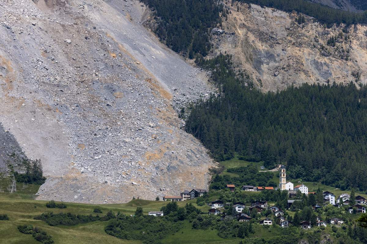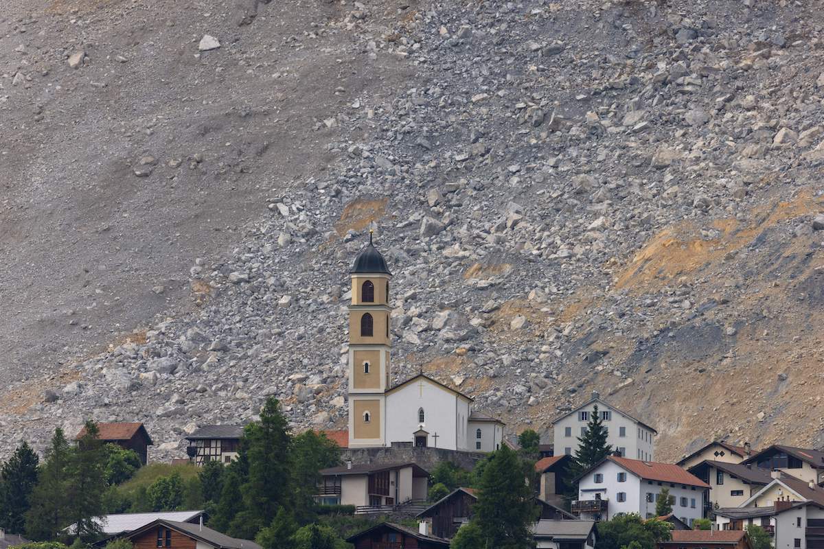 This picture taken on June 16, 2023 shows a view of Brienz, Switzerland, after a massive landslide that spared the village. (Photo by ARND WIEGMANN/AFP via Getty Images)