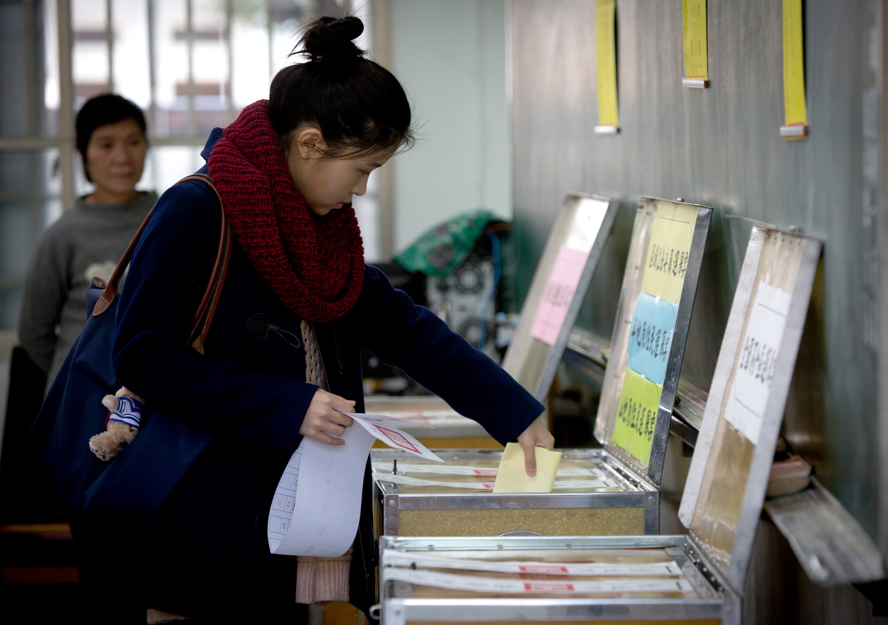A Taiwanese woman votes at a polling station on January 16, 2016 in Taipei, Taiwan. (Photo by Ashley Pon/Getty Images)