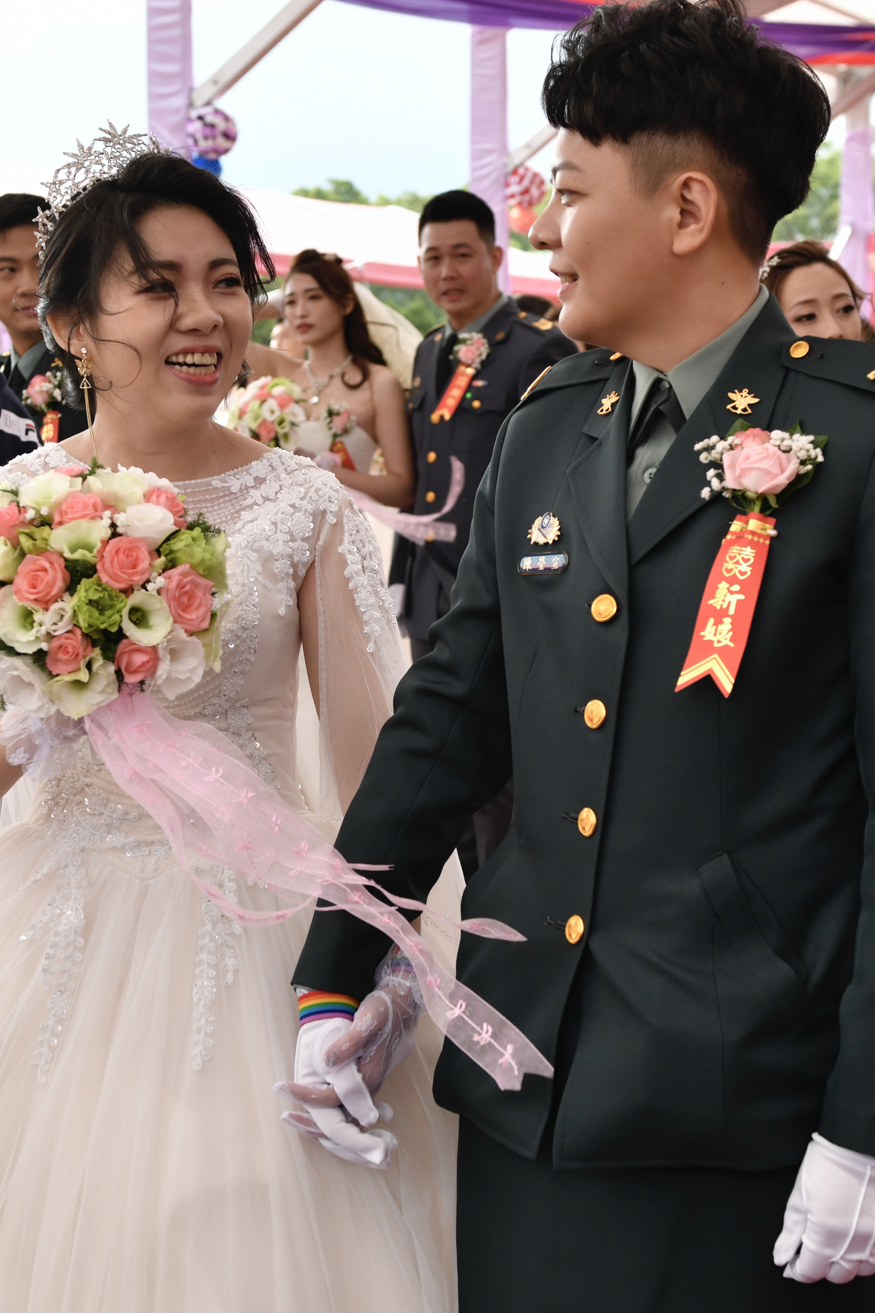 Taiwanese army Major Wang Yi, 36, and Yumi Meng, 37, and army lieutenant Chen Ying-hsuan, 27, and Li Li-chen, 26, have become the first same-sex couples to take part in the country’s annual military mass weddings.