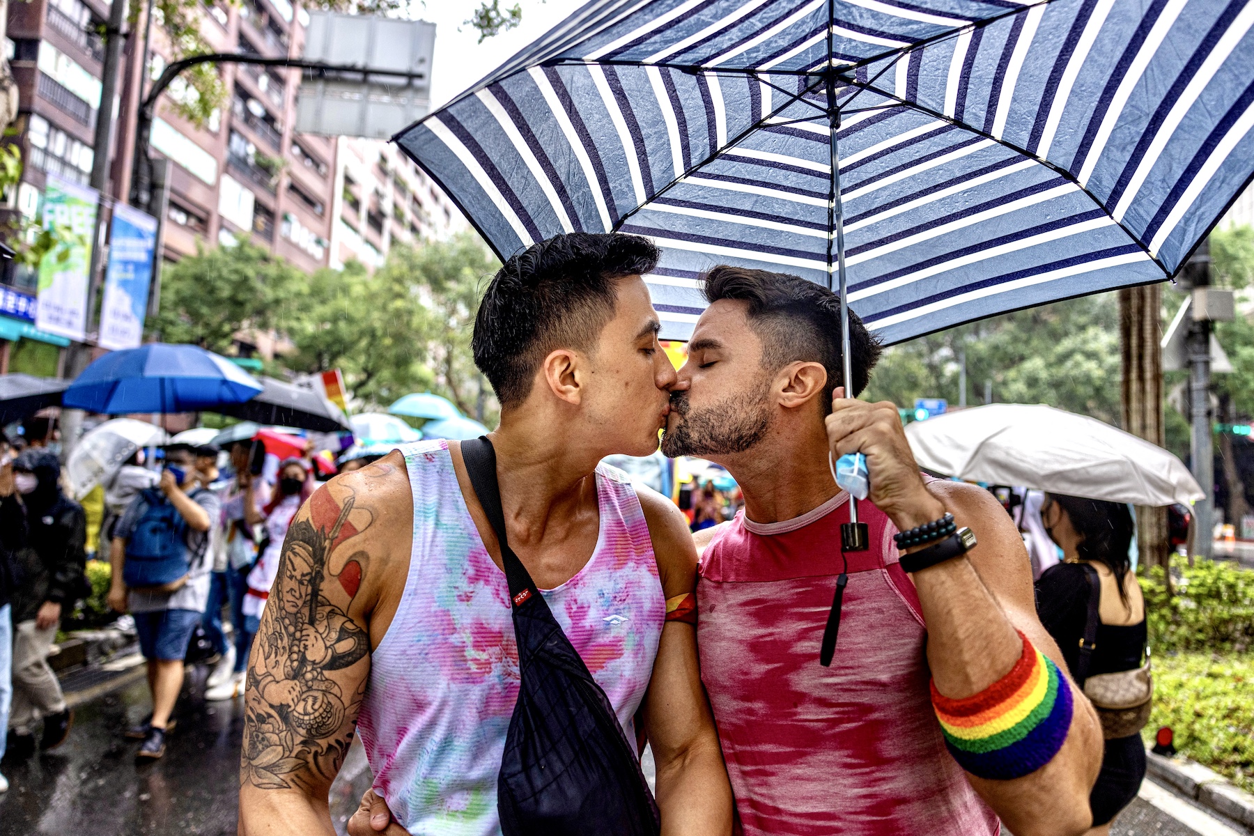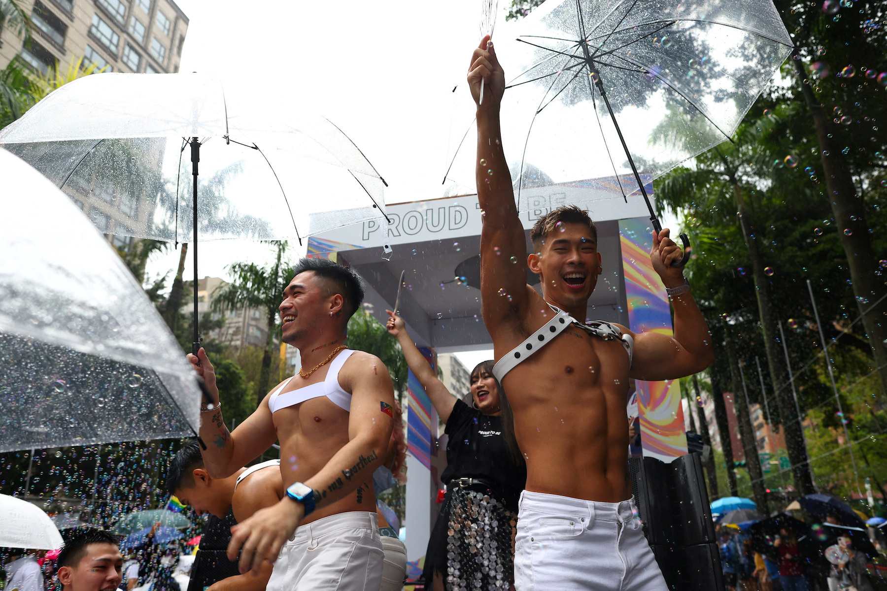 People pose for a photo during the annual pride parade in Taipei, Taiwan, October 29, 2022. (Photo by Ann Wang / Reuters)A girl with rainbow-colored makeup poses for a photo during the annual pride parade in Taipei, Taiwan, October 29, 2022. (Photo by Ann Wang / Reuters)A couple kiss in front of cameras as they attend the annual Taipei Pride Parade on a rainy day on October 29, 2022 in Taipei, Taiwan. (Photo by Annabelle Chih/Getty Images)People cheer for cameras as they attend the annual Taipei Pride Parade on a rainy day on October 29, 2022 in Taipei, Taiwan. (Photo by Annabelle Chih/Getty Images)Performers dance on a truck during the annual Taipei Pride Parade on a rainy day on October 29, 2022 in Taipei, Taiwan (Photo by Annabelle Chih/Getty Images)People dance during the annual pride parade in Taipei, Taiwan, October 29, 2022. (Photo by Ann Wang / Reuters)Attendees during a Pride parade in Taipei, Taiwan, on Saturday, Oct. 29, 2022. (Lam Yik Fei/Bloomberg)A man hoists a huge rainbow flag as they attend the annual Taipei Pride Parade on a rainy day on October 29, 2022 in Taipei, Taiwan. (Photo by Annabelle Chih/Getty Images)People dress up for the annual Taipei Pride Parade on a rainy day on October 29, 2022 in Taipei, Taiwan. (Photo by Annabelle Chih/Getty Images)A woman holds a placard during the annual Taipei Pride Parade on a rainy day on October 29, 2022 in Taipei, Taiwan. (Photo by Annabelle Chih/Getty Images)