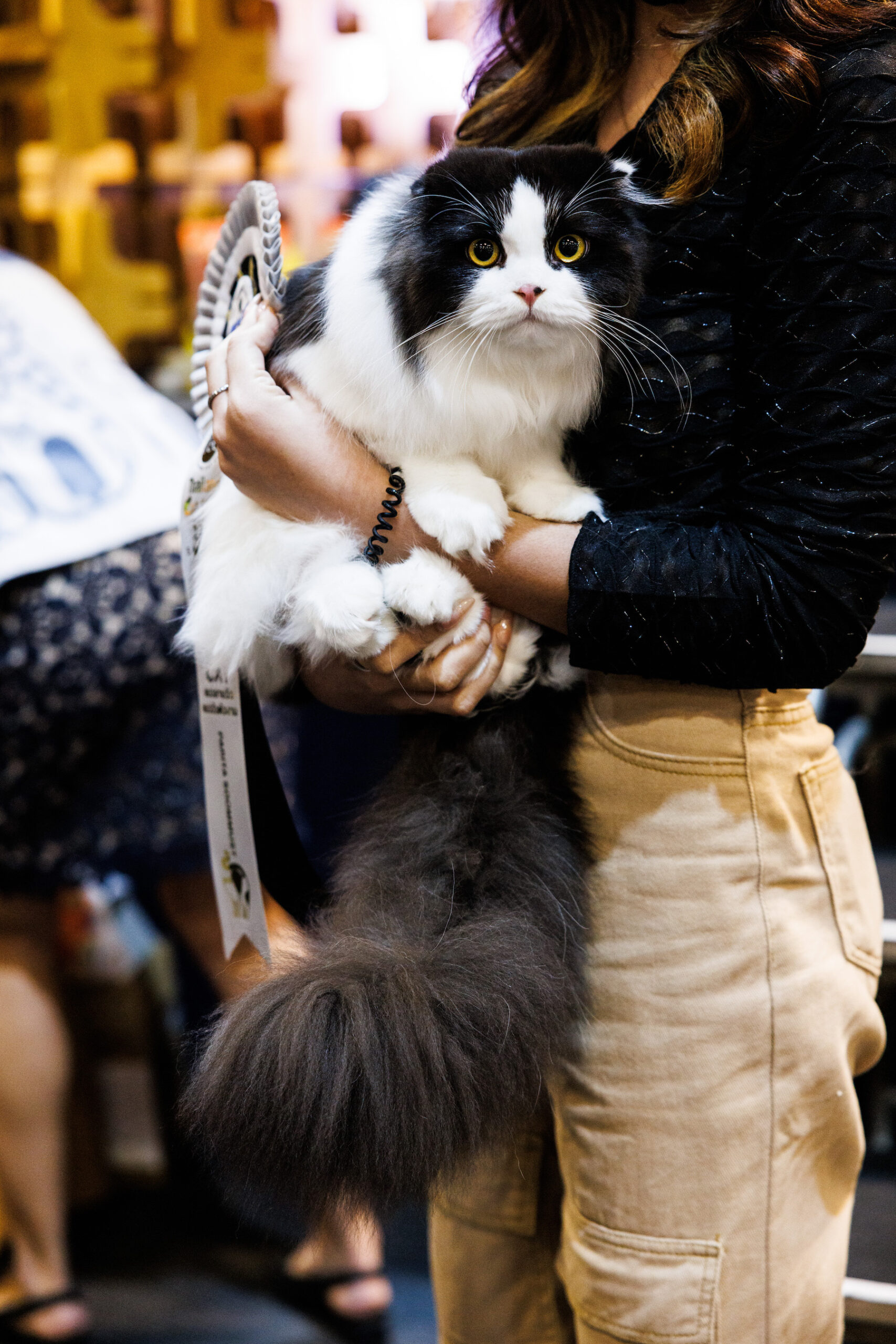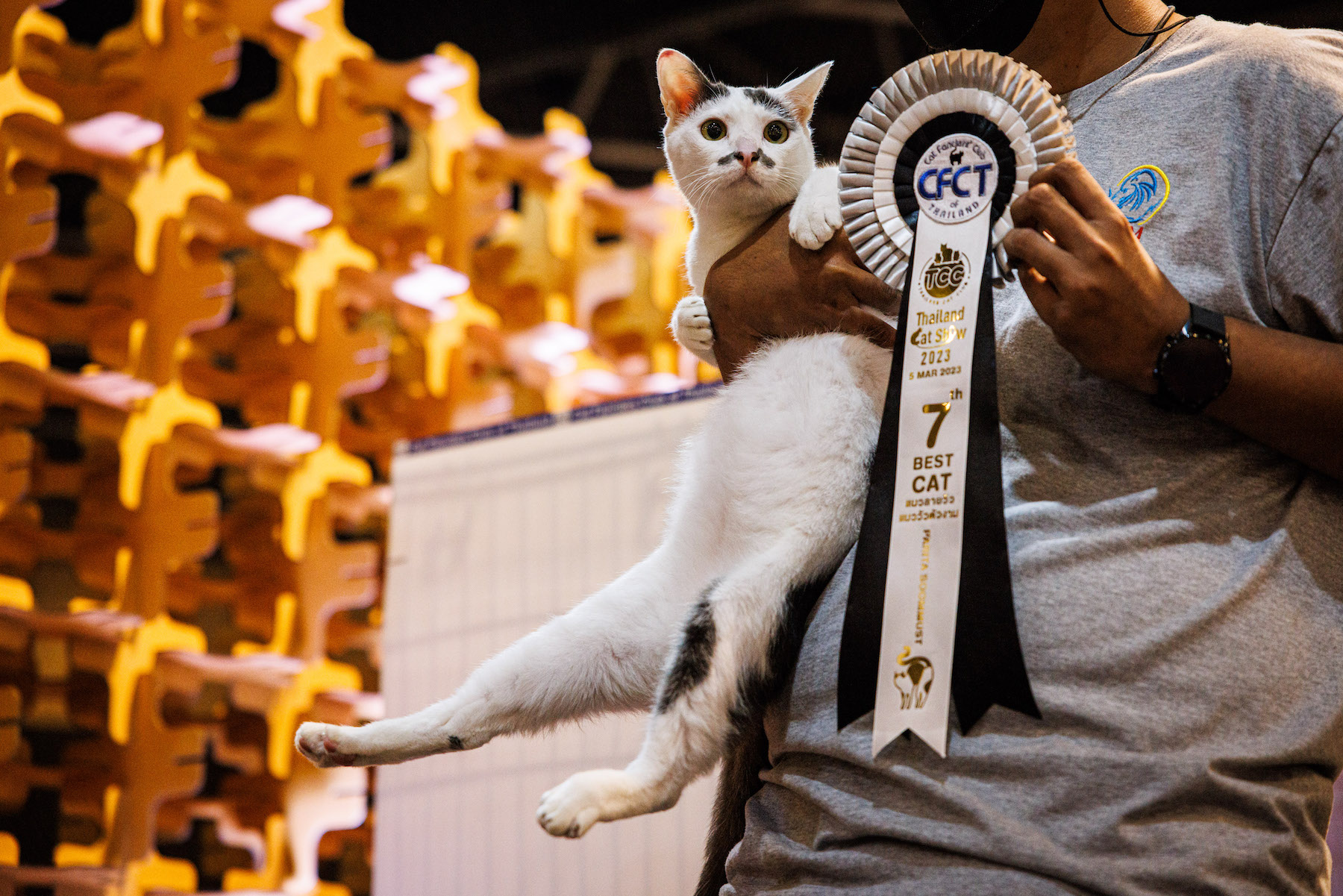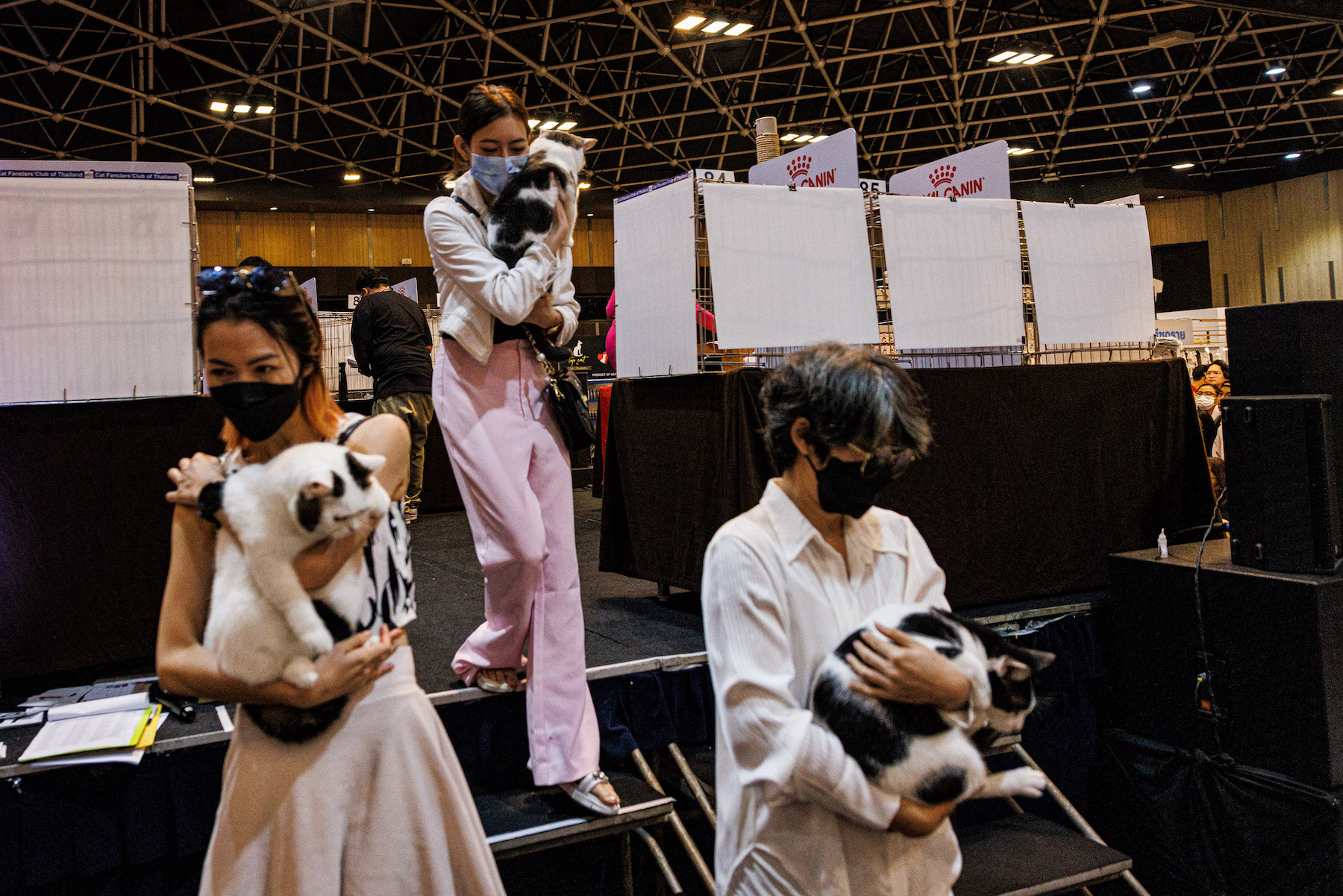 A “Cat Who Looks Like Cows” competitor waits backstage on March 5, 2023 in Bangkok, Thailand. (Photo by Lauren DeCicca/Getty Images)