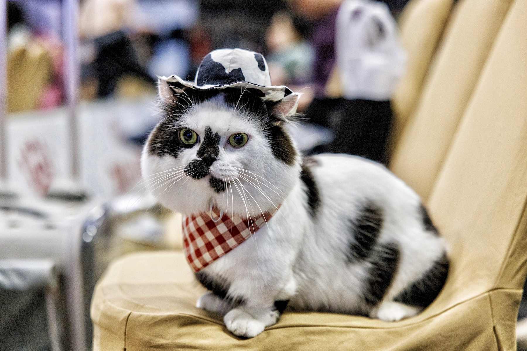 A cat waits backstage with their owner before competing in the “Cats Who Look Like Cows” competition on March 5, 2023 in Bangkok, Thailand. (Photo by Lauren DeCicca/Getty Images)A participant in the “Cats Who Look Like Cows” competition wears a cowboy outfit back stage before judging on March 5, 2023 in Bangkok, Thailand. (Photo by Lauren DeCicca/Getty Images)