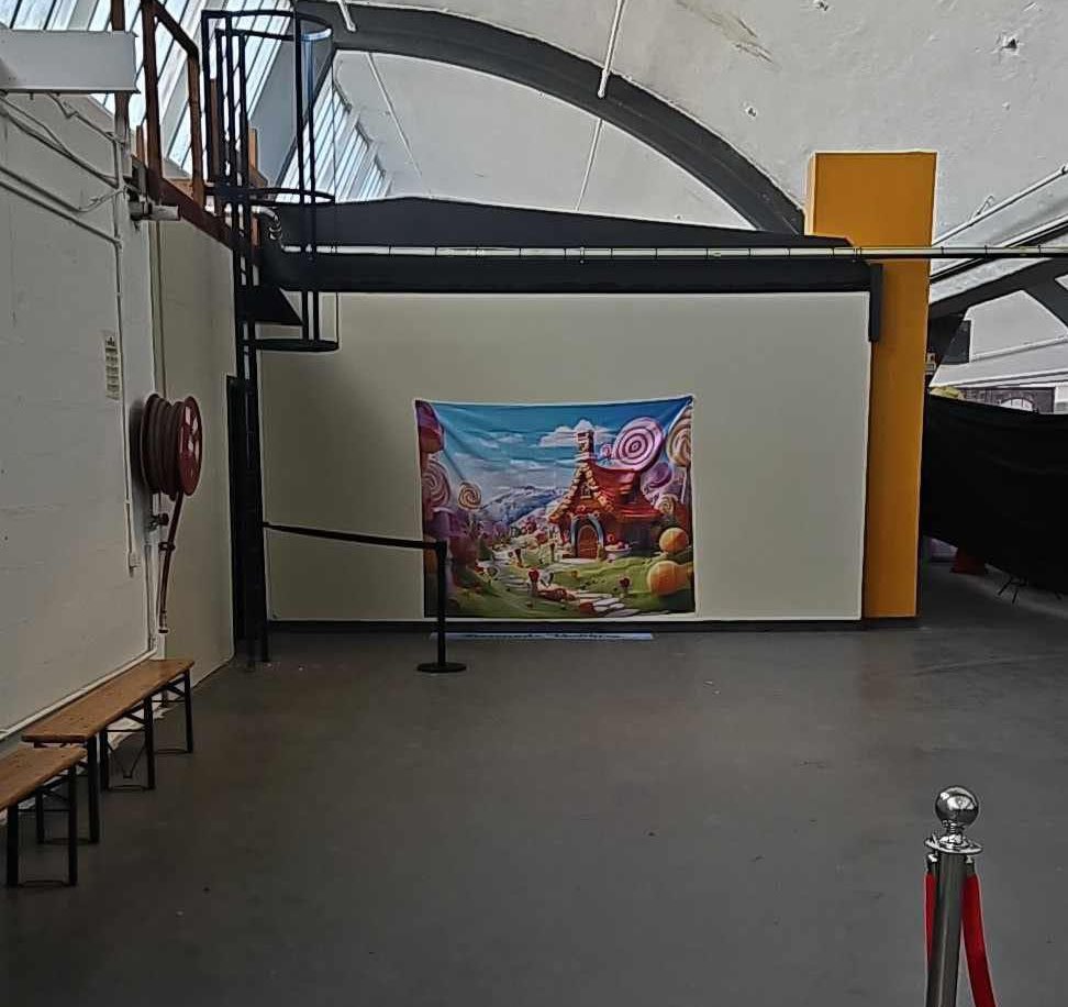 Photos of the “experience” showed a sparsely-decorated venue with a rainbow arch, a handful of candy cane props and some scattered mushrooms and tables.