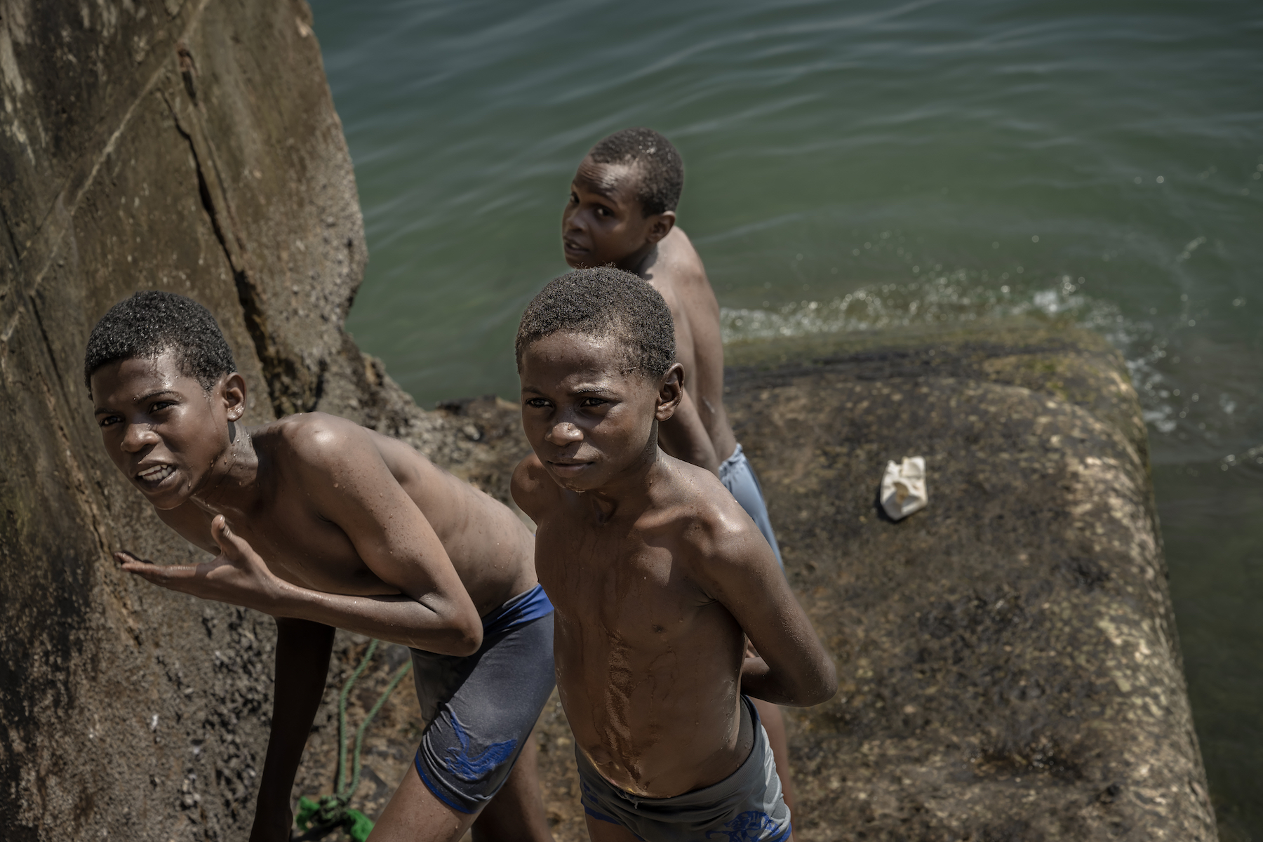 Boys swim in the water to cool off as people continue their lives in African Indian Ocean island of Zanzibar, Tanzania on June 30, 2023. (Photo by Sebnem Coskun/Anadolu Agency via Getty Images)